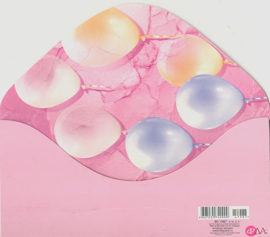 | | Открытка Поздравительная для денег ФДА 90-1941 (без названия) (женская) (без текста)  Деньги - самый нужный и универсальный подарок, который тоже нуждается в красивой упаковке. Наш конверт для денег легко решит эту задачу! Благодаря оригинальному принту и тематической надписи такой презент не будет казаться бездушным и материальным. Конверт подходит для купюр всех номиналов, в него можно вложить маленький сувенир или шоколадку. |