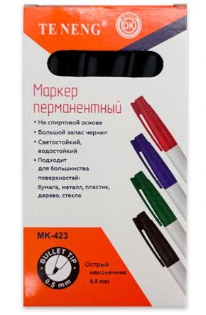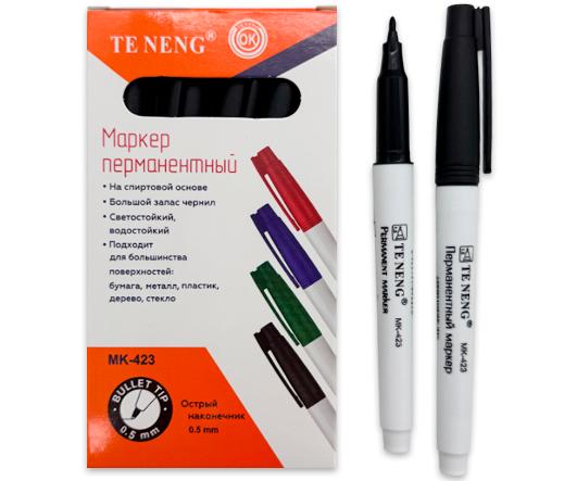 | | Маркер перманентный (пулевидный пишущий узел) КИТ 0 5мм острый черный MK-423  Перманентный маркер предназначен для письма на любой поверхности: бумага, полиэтилен, дерево, стекло, металл, натуральная кожа, ткань, камень, плитка. Чернила могут глубоко проникать сквозь бумагу, поэтому лучше всего рисовать или писать на картоне. Особая нестираемая основа перманентного маркера обеспечивает такие качества, как стойкость к воздействию воды, ультрафиолету, низким и высоким температурам. Благодаря спиртовой основе чернила быстро сохнут и не размазываются. Износостойкий круглый наконечник устойчив к повреждениям и обеспечивает экономный расход чернил. Маркер не перезаправляется. Плотно закрывается колпачком, что предотвращает высыхание наконечника и чернил. Цвет колпачка соответствует цвету чернил. |