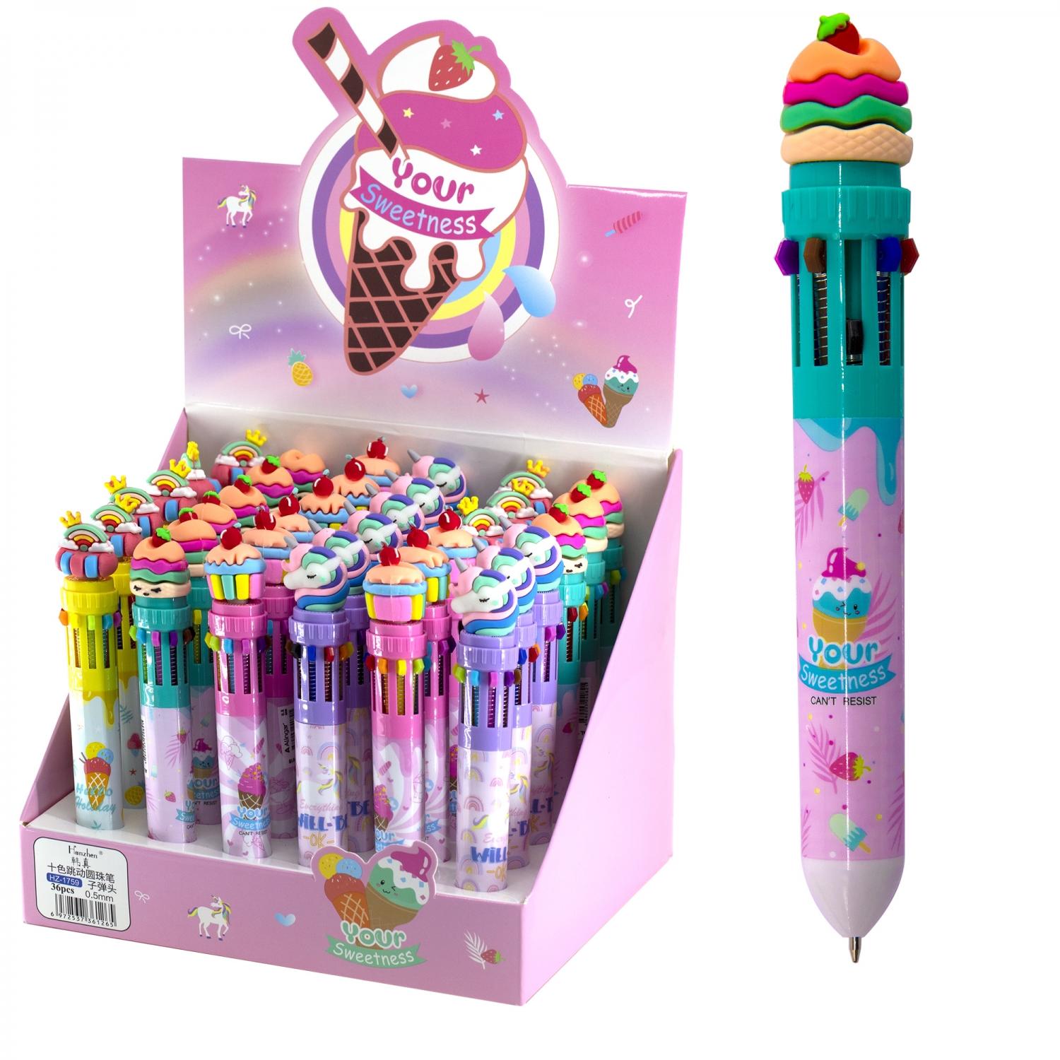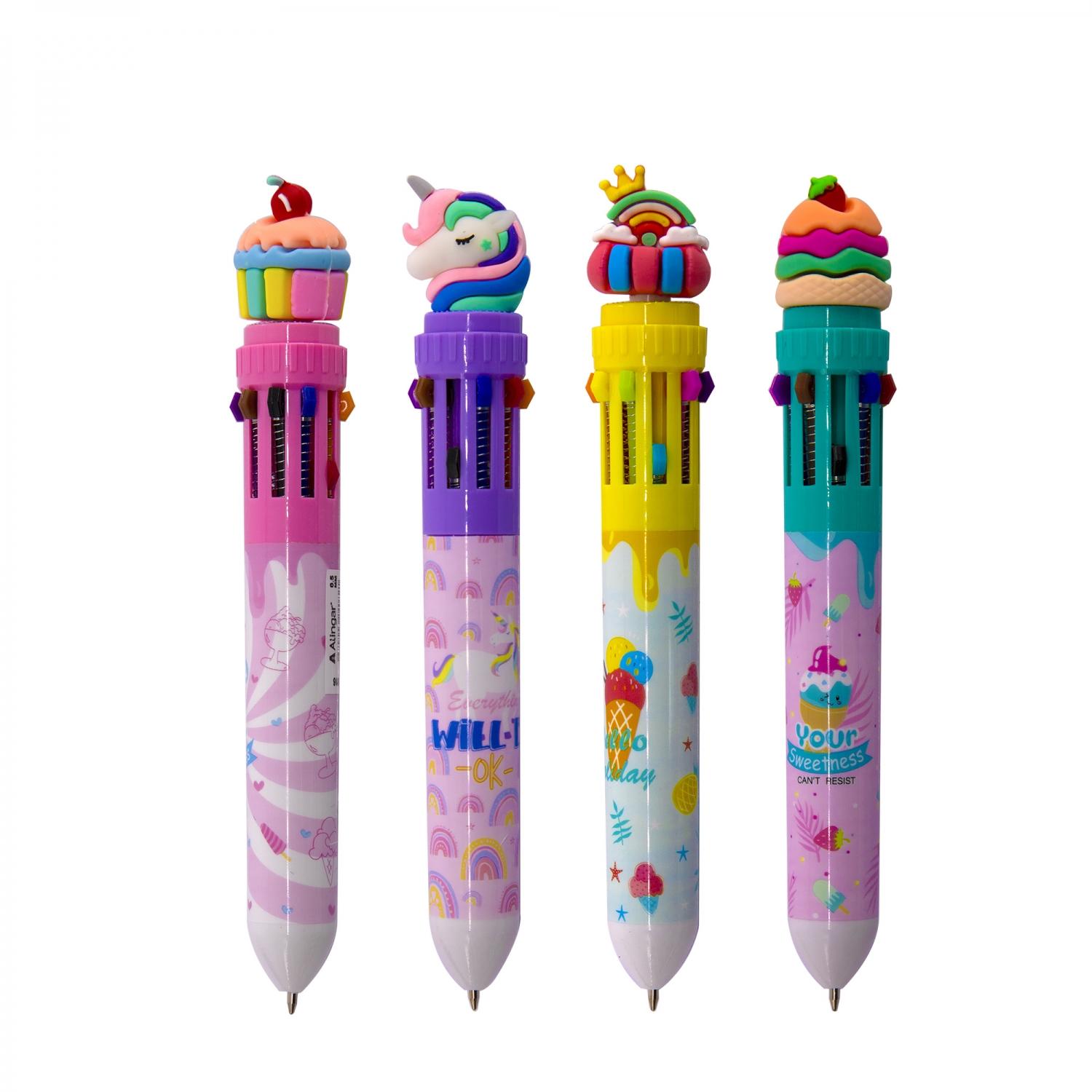 | | Ручка многоцветная (многостержневая) автоматическая 10 цветов КИТ DE-133/KK-7005 Bakery (с рисунком) Ассорти  Многоцветная шариковая ручка на 10 цветов – это оригинальная и очень полезная покупка, которую будет рад получить в подарок и ребенок, и взрослый человек. Автоматическая шариковая ручка позволяет писать любым из 10 цветов. |