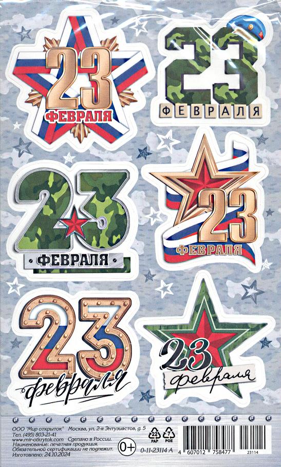 | 23 ФЕВРАЛЯ! Наклейка А6 (МИР ОТКРЫТОК) 0-11-23114А 23 Февраля(Россия)
