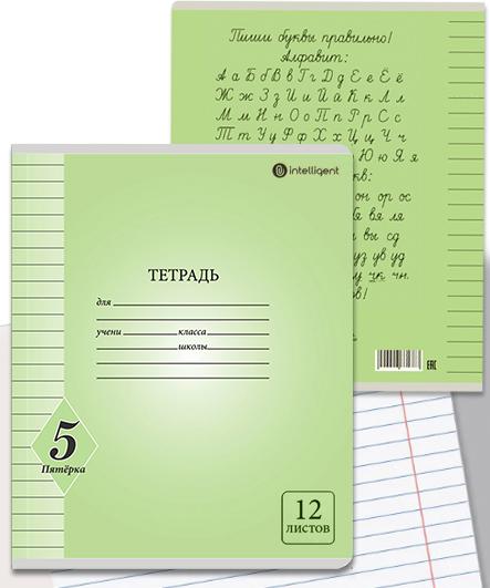 | Тетрадь 12 листов А5 на скрепке (линейка) INTELLIGENT офсет (мелованная картонная обложка) Пятерка