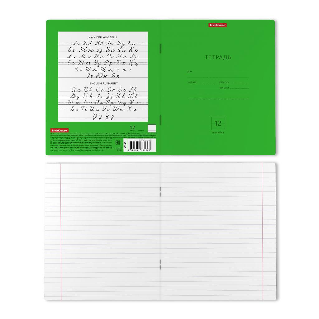 | Тетрадь 12 листов А5 на скрепке (линейка) SILWERHOF офсет (картонная обложка) зеленая