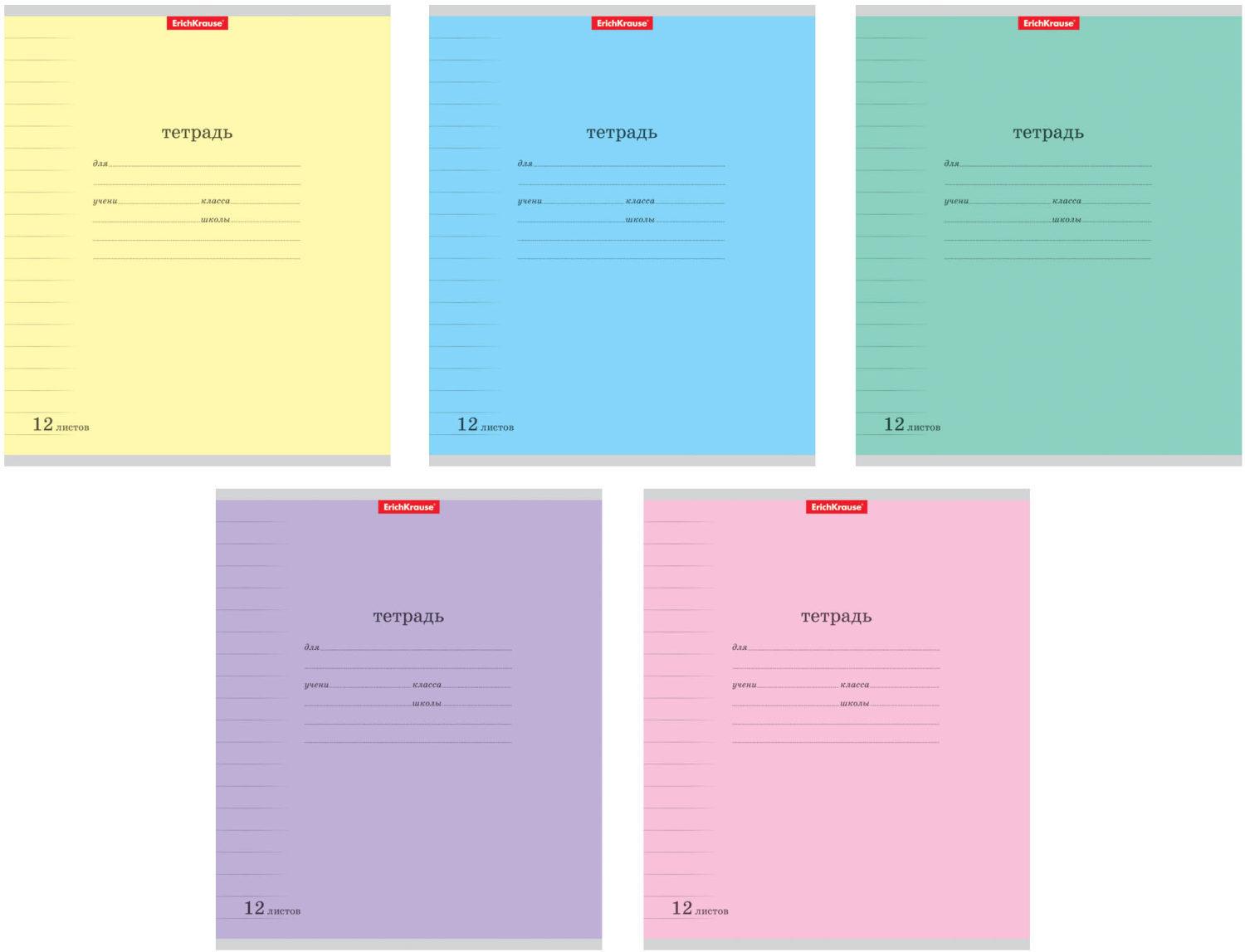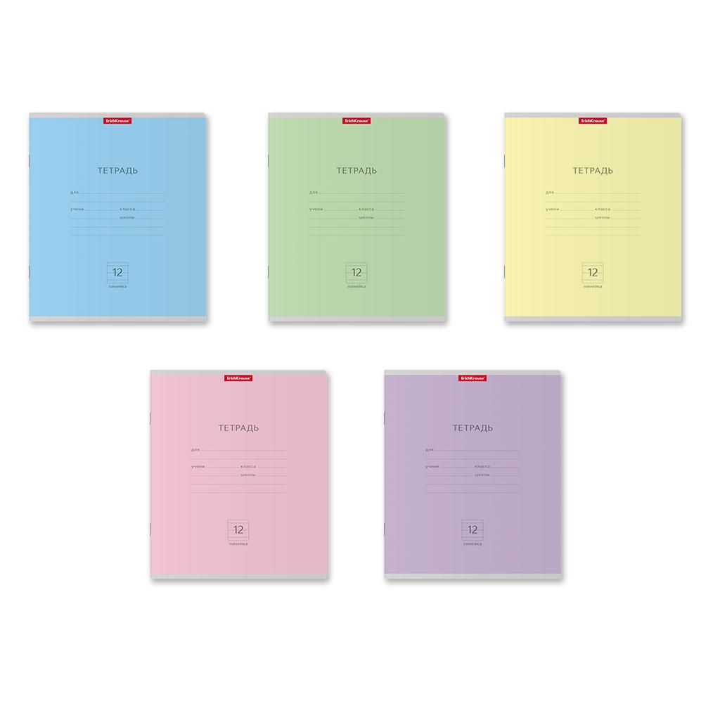 Тетрадь 12 листов А5 на скрепке (линейка) ErichKrause офсет (картонная обложка) Классика Nature Colors Mix-pack Ассорти  Тетрадь школьная ученическая формата А5+ (170х203 мм). Обложка из высококачественного мелованного картона плотностью 180 г/м2. В блоке 12 листов в линейку с полями. Бумага офсетная плотностью 60 г/м2. Цвет линовки - синий. Скругленные уголки обложки и блока. Тип скрепления - скоба. Тетради разных цветов упакованы в термоусадочную пленку по 10 штук. Товар представлен в ассортименте без возможности выбора цвета/дизайна. |