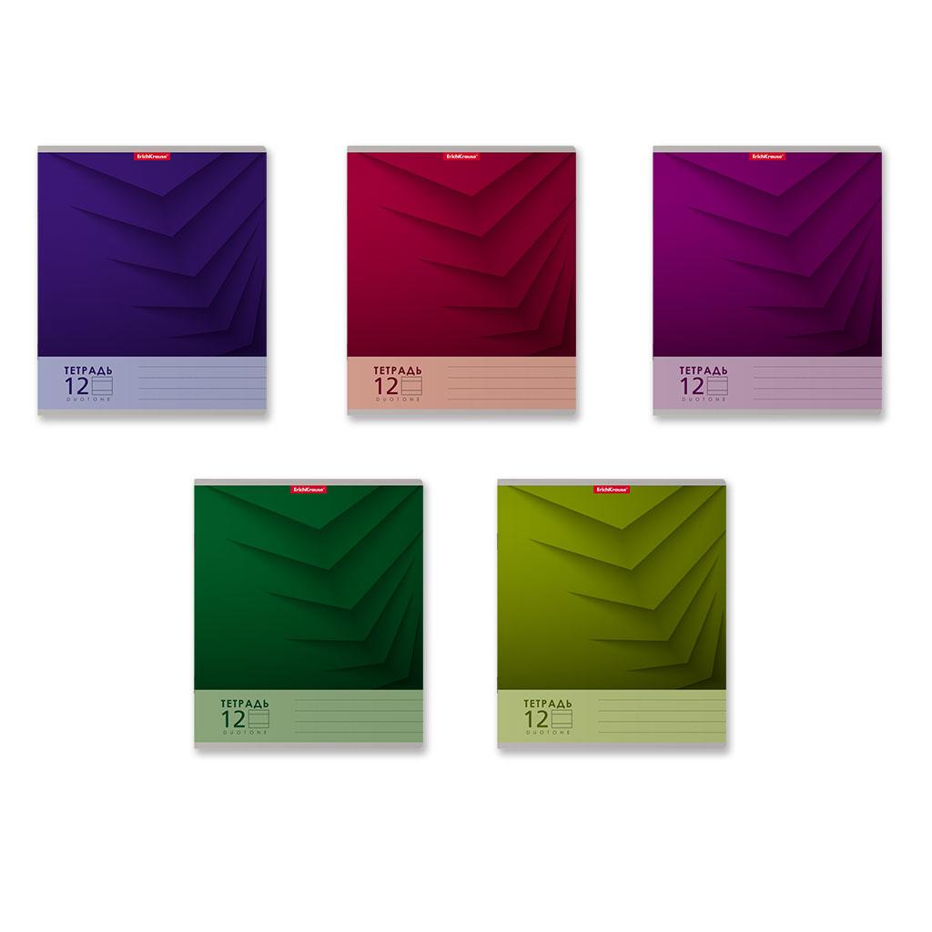 | Тетрадь 12 листов А5 на скрепке (линейка) ErichKrause офсет (картонная обложка) Duotone next Mix-pack Ассорти  Тетрадь школьная ученическая формата А5+ (170х203 мм). Обложка из высококачественного мелованного картона плотностью 170 г/м2. В блоке 12 листов в линейку с полями. Бумага офсетная плотностью 60 г/м2. Цвет линовки - синий. Скругленные уголки обложки и блока. Тип скрепления - скоба. Тетради разных цветов упакованы в термоусадочную пленку по 10 штук.Товар представлен в ассортименте без возможности выбора цвета/дизайна. |