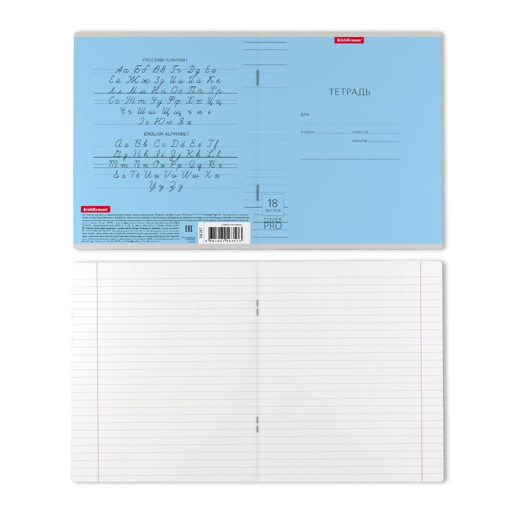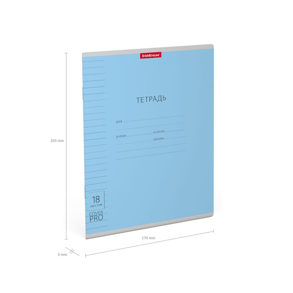 | Тетрадь 18 листов А5 на скрепке (линейка) ErichKrause офсет (пластиковая обложка) CoverPro Классика Vivid синяя  Тетрадь школьная ученическая формата А5+ (170x203 мм). Двойная обложка: внешняя выполнена из высококачественного износостойкого цветного пластика с фактурой «апельсиновая корка», внутренняя — из офсетной бумаги. В блоке 18 листов. Бумага офсетная плотностью 60 г/м2. Цвет линовки — синий. Скругленные уголки обложки и блока. Тип скрепления — скоба. |