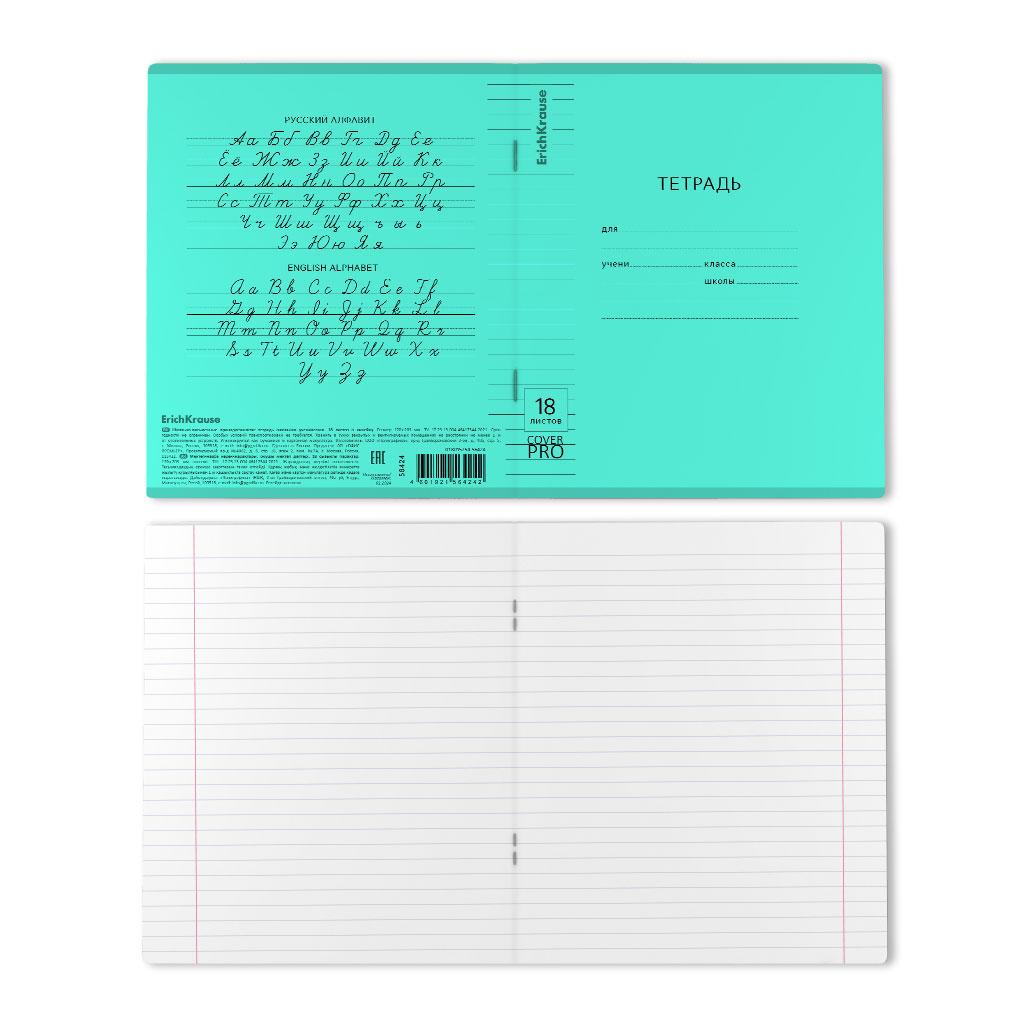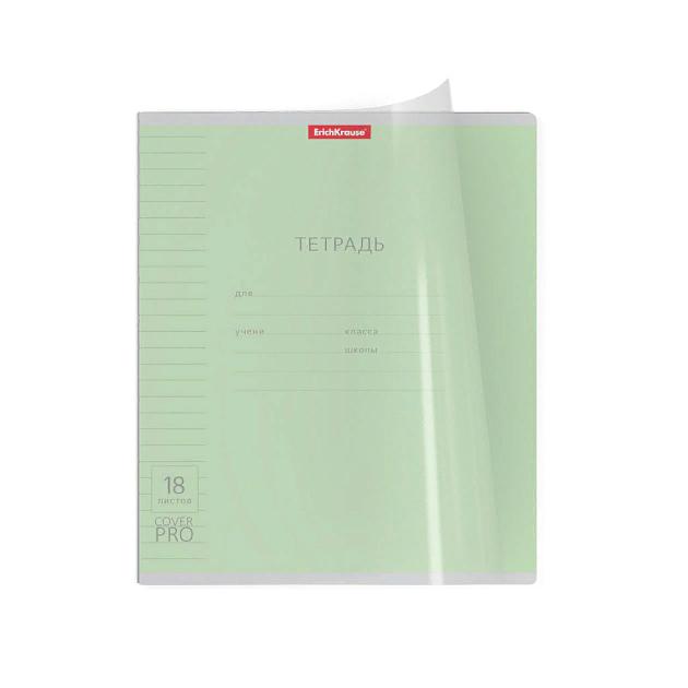 | Тетрадь 18 листов А5 на скрепке (линейка) ErichKrause офсет (пластиковая обложка) CoverPro Классика зеленая  Тетрадь школьная ученическая формата А5+ (170x203 мм). Двойная обложка: внешняя выполнена из высококачественного износостойкого прозрачного пластика с фактурой «апельсиновая корка», внутренняя — из качественной мелованной бумаги. В блоке 18 листов в линейку. Бумага офсетная плотностью 60 г/м2. Цвет линовки — синий. Скругленные уголки обложки и блока. Тип скрепления — скоба. |
