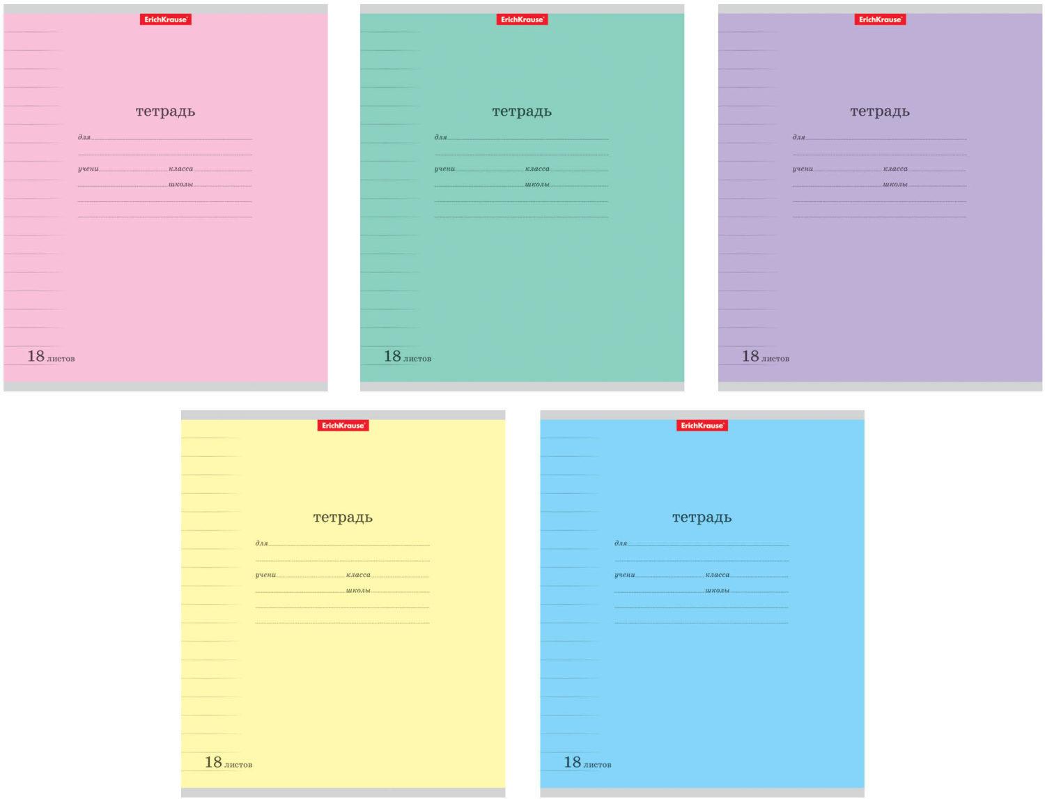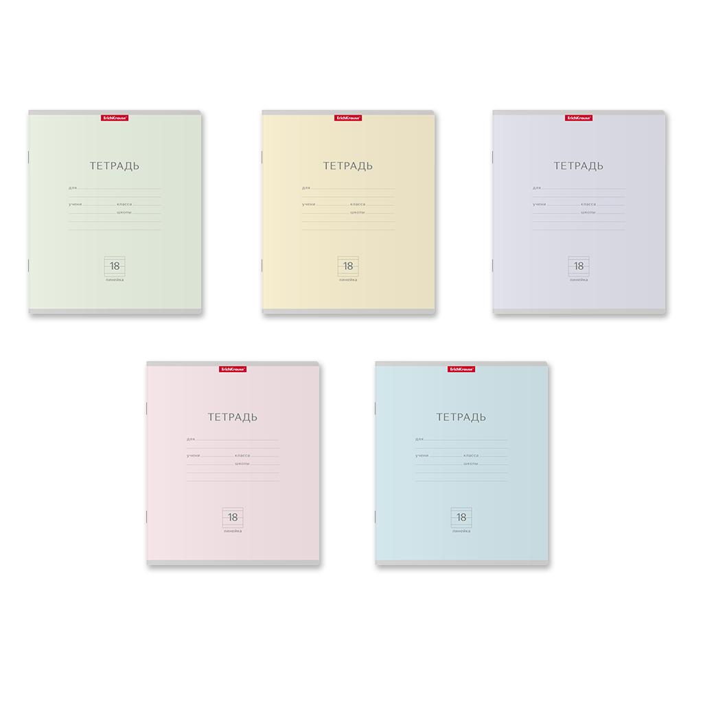 | Тетрадь 18 листов А5 на скрепке (линейка) ErichKrause офсет (картонная обложка) Классика Pastel Ассорти  Тетрадь школьная ученическая формата А5+ (170х203 мм). Обложка из высококачественного мелованного картона плотностью 170 г/м2. В блоке 18 листов в линейку с полями. Бумага офсетная плотностью 60 г/м2. Цвет линовки - синий. Скругленные уголки обложки и блока. Тип скрепления - скоба. Тетради одного дизайна упакованы в термоусадочную пленку по 10 штук. Товар поставляется в нескольких вариантах дизайна без возможности выбора. |