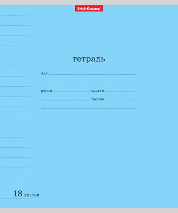 | Тетрадь 18 листов А5 на скрепке (линейка) ErichKrause офсет (картонная обложка) Классика Линовка Ассорти 35289  Тетрадь школьная ученическая формата А5+ (170х203 мм). Обложка из высококачественного мелованного картона плотностью 180 г/м2. В блоке 18 листов в линейку с полями. Бумага офсетная плотностью 60 г/м2. Цвет линовки - синий. Скругленные уголки обложки и блока. Тип скрепления - скоба. Товар предоставляется без возможности выбора. |