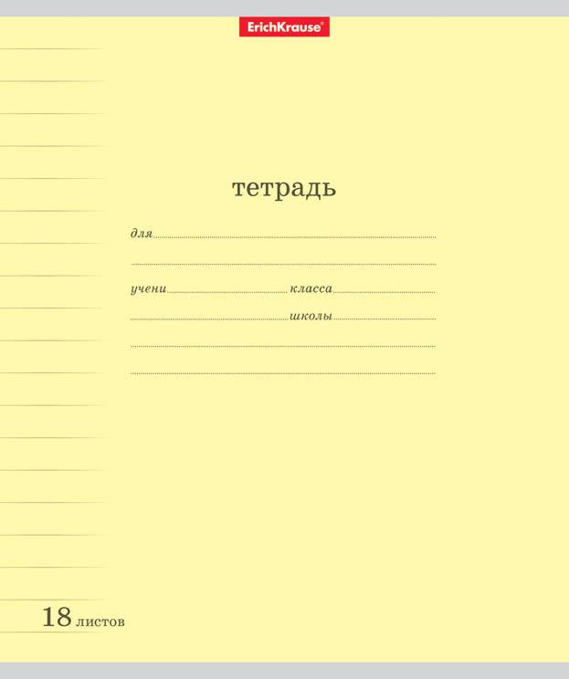 | | Тетрадь 18 листов А5 на скрепке (линейка) ErichKrause офсет (картонная обложка) Классика Линовка желтая  Тетрадь школьная ученическая формата А5+ (170х203 мм). Обложка из высококачественного мелованного картона плотностью 170 г/м2. В блоке 18 листов в линейку с полями. Бумага офсетная плотностью 60 г/м2. Цвет линовки - синий. Скругленные уголки обложки и блока. Тип скрепления - скоба. Тетради одного дизайна упакованы в термоусадочную пленку по 10 штук.