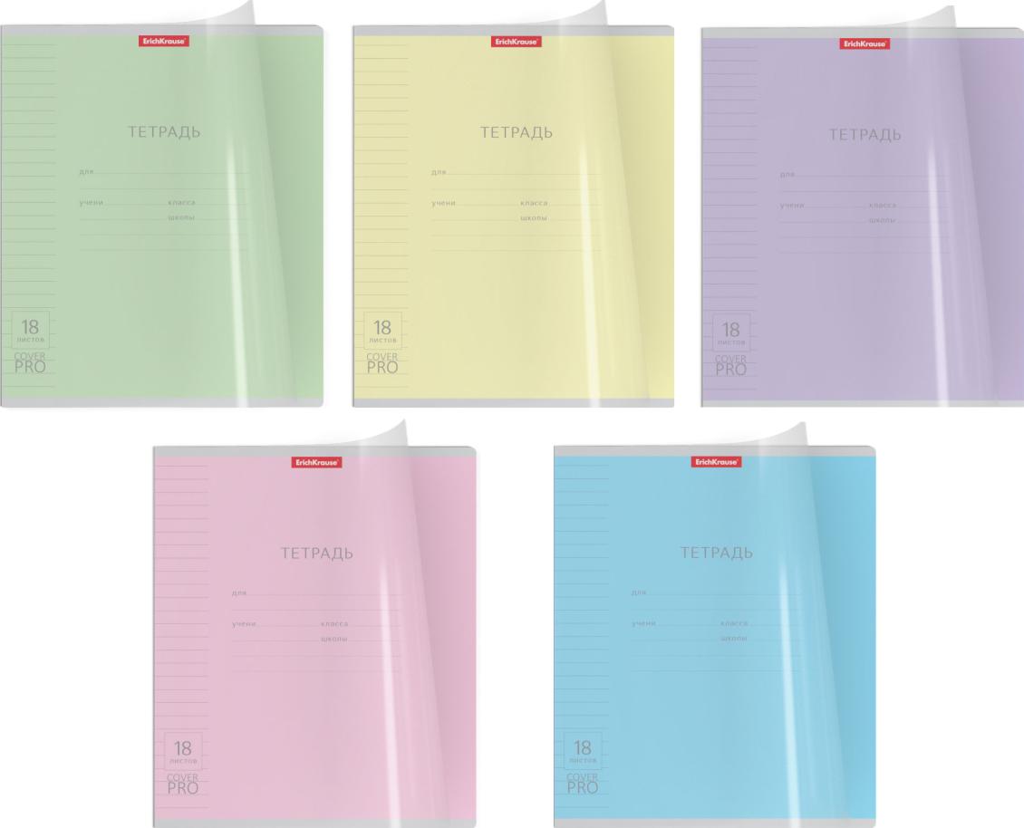 | | Тетрадь 18 листов А5 на скрепке (линейка) ErichKrause офсет (пластиковая обложка) CoverPro Класс Pulse Mix-pack Ассорти  Тетрадь школьная ученическая формата А5+ (170x203 мм). Двойная обложка: внешняя выполнена из высококачественного износостойкого цветного пластика с фактурой «песок», внутренняя — из офсетной бумаги. В блоке 18 листов в линейку. Бумага офсетная плотностью 60 г/м2. Цвет линовки — синий. Скругленные уголки обложки и блока. Тип скрепления — скоба. 10 тетрадей пяти разных цветов упакованы в термоусадочную пленку по 2 штуки каждого цвета. |