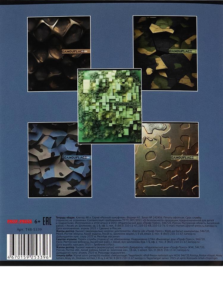 | | Тетрадь общая А5 на скрепке 48 листов (клетка) ИДП офсет (выборочный лак) Разный камуфляж MIX Ассорти  На протяжении всего обучения в школе главным помощником для учащегося является тетрадь! Компания "Проф-Пресс" предлагает огромный выбор различных видов и дизайнов! Тетрадь школьная изготавливается из высококачественной бумаги в формате А5, внутренний блок: 48 листов, с линовкой в клетку. Крепление: на скрепке. Дизайн красочной цветной обложки тетради из мелованного картона дополнен выборочным лаком с эффектом морской пены. Оригинальные рисунки, насыщенные цвета и запоминающиеся принты будут оценены каждым учеником по достоинству. Подходит для использования в школах, высших учебных заведениях, для дома и офиса. |