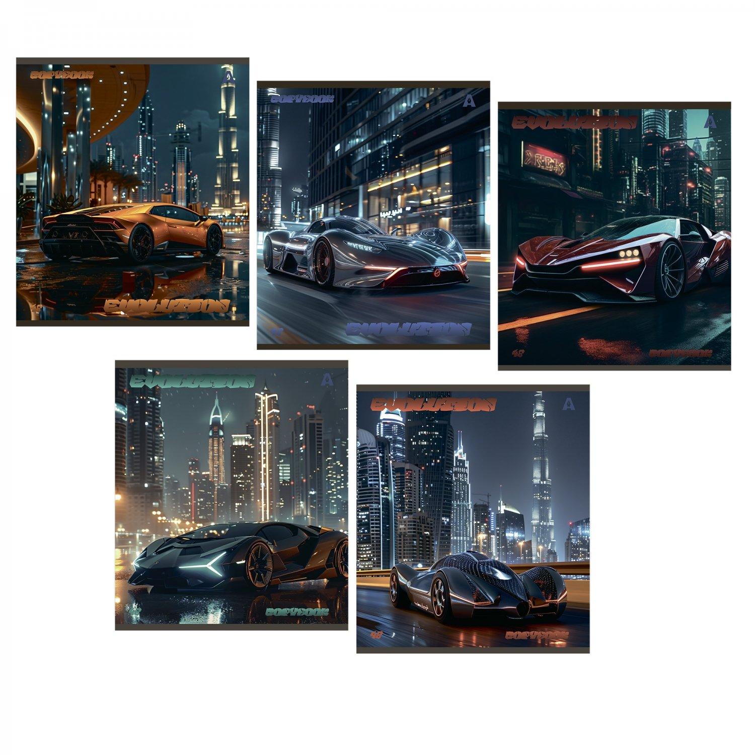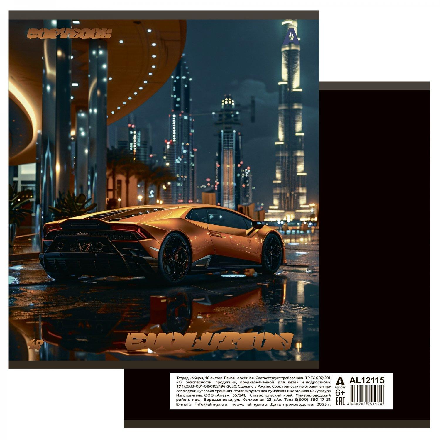 Тетрадь общая А5 на скрепке 48 листов (клетка) ALINGAR офсет (выборочный лак) Evolution MIX Ассорти  Тетрадь 48л, А5, клетка, Alingar, "Evolution", скрепка,мелованный картон (стандарт), выб УФ лак, блок офсет, 5 дизайнов в пленке т/у |