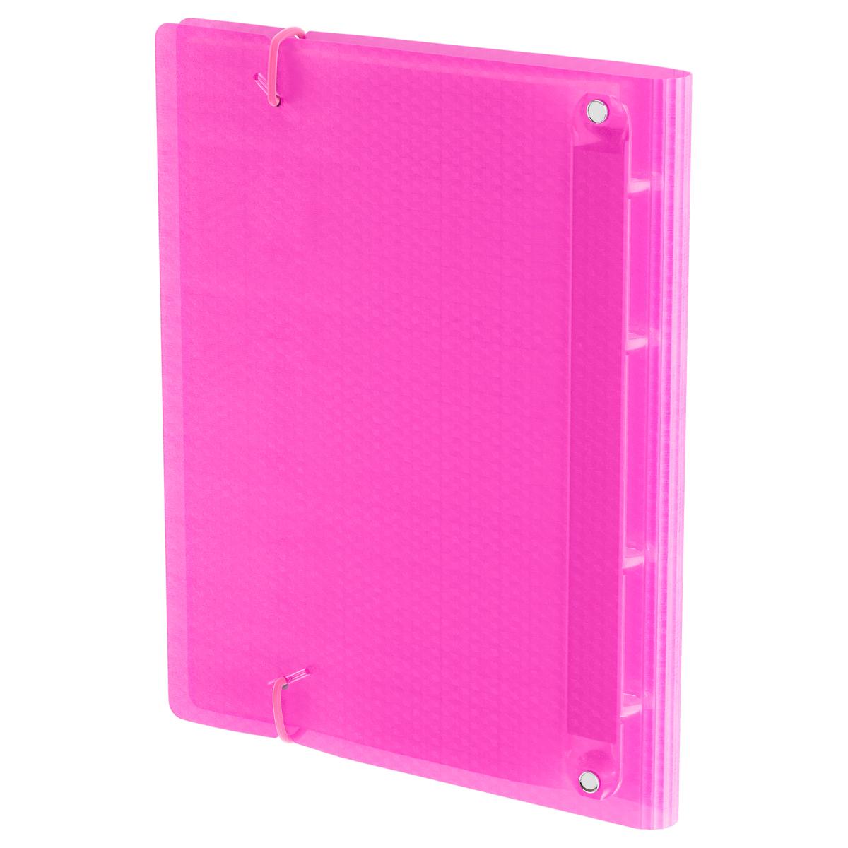 Тетрадь на кольцах А5 со сменным блоком 120 листов (клетка) BG (пластиковая обложка) (с эластичной резинкой-держателем) Neon розовая (п/упаковка)