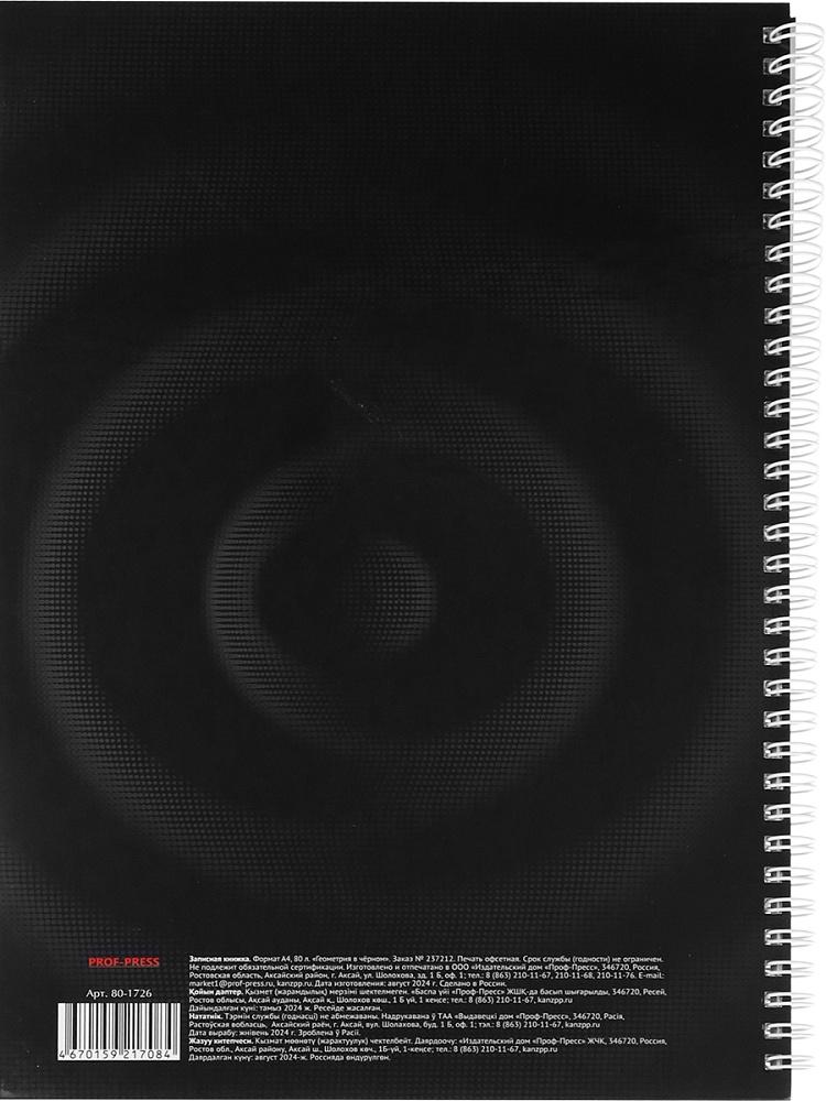 Тетрадь общая А4 на гребне (твердая обложка) 80 листов (клетка) ИДП офсет (глянцевая ламинация) Геометрия в черном