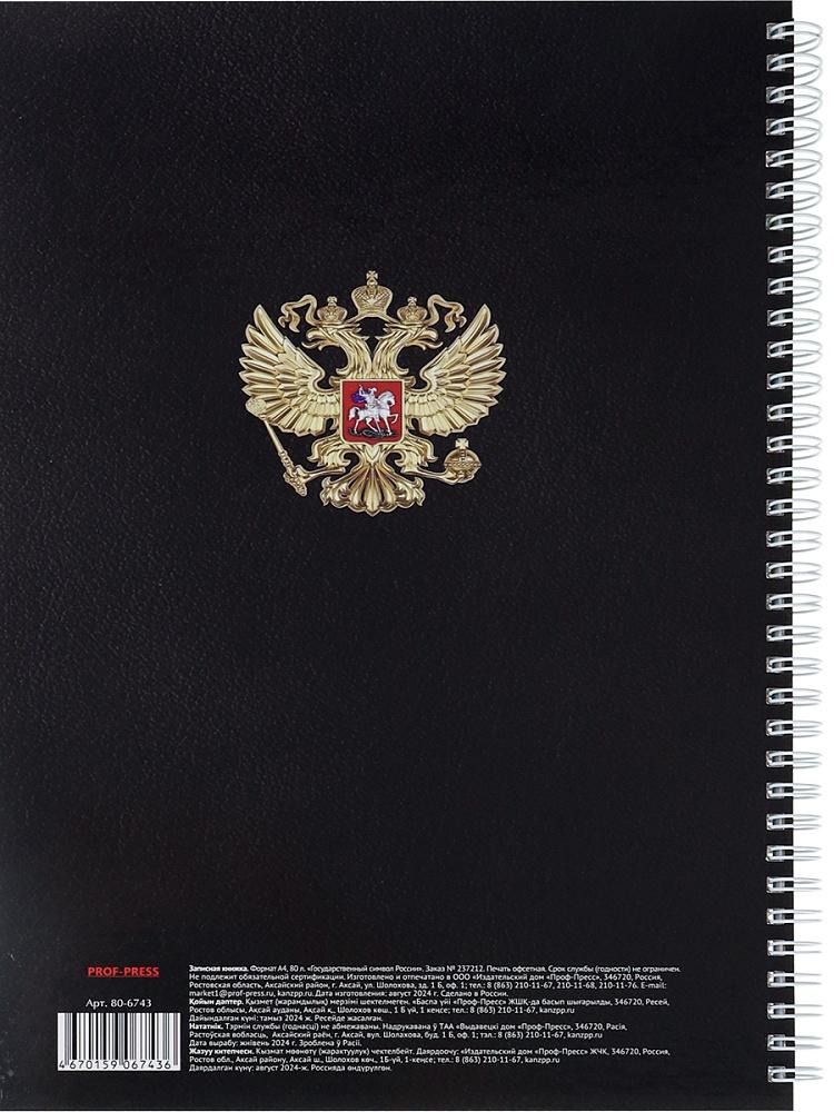 Тетрадь общая А4 на гребне (твердая обложка) 80 листов (клетка) ИДП офсет (глянцевая ламинация) Гос символ России