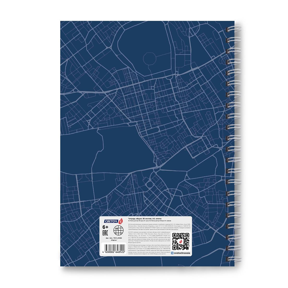 | | Тетрадь общая А4 на гребне (твердая обложка) 80 листов (клетка) SVETOCH офсет (матовая ламинация) Карта  Тетрадь общая А4 формата, 80 листов предназначена для учащихся средних и старших классов, учащихся вузов, а также прекрасно подойдет для дома и офиса. Внутренний блок изготовлен из качественной офсетной бумаги плотностью 65 г/кв. м, 100% белизны. Обложка - твердый картон. Дизайн изделия дополнен спецэффектом в виде матовой ламинации. Линовка - клетка, без полей. Вид скрепления - гребень. Скрепление гребень позволяет раскрывать тетрадь на 360 градусов. |
