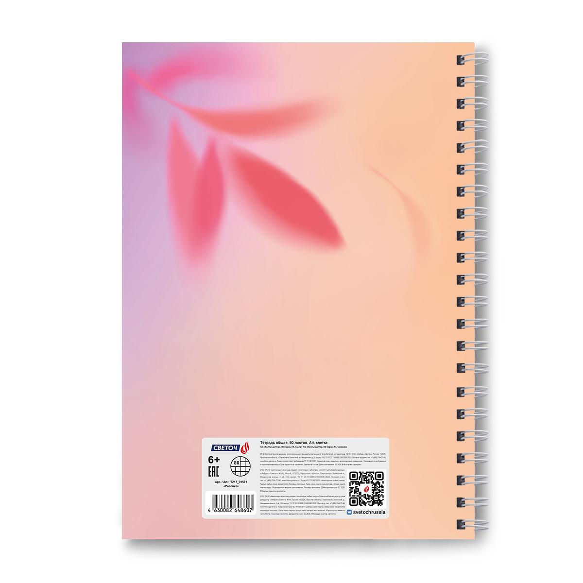 | Тетрадь общая А4 на гребне (твердая обложка) 80 листов (клетка) SVETOCH офсет (матовая ламинация) Рассвет  Тетрадь общая А4 формата, 80 листов предназначена для учащихся средних и старших классов, учащихся вузов, а также прекрасно подойдет для дома и офиса. Внутренний блок изготовлен из качественной офсетной бумаги плотностью 65 г/кв. м, 100% белизны. Обложка - твердый картон. Дизайн изделия дополнен спецэффектом в виде матовой ламинации. Линовка - клетка, без полей. Вид скрепления - гребень. Скрепление гребень позволяет раскрывать тетрадь на 360 градусов. |