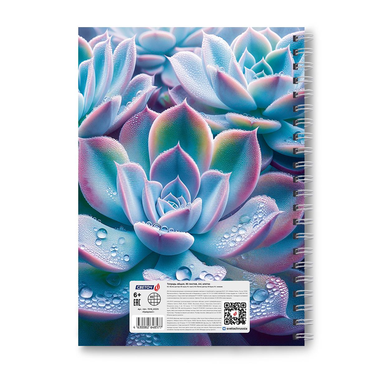 | | Тетрадь общая А4 на гребне (твердая обложка) 80 листов (клетка) SVETOCH офсет (матовая ламинация) (выборочный лак) Суккул  Тетрадь общая А4 формата, 80 листов предназначена для учащихся средних и старших классов, учащихся вузов, а также прекрасно подойдет для дома и офиса. Внутренний блок изготовлен из качественной офсетной бумаги плотностью 65 г/кв. м, 100% белизны. Обложка - твердый картон. Дизайн изделия дополнен спецэффектом в виде матовой ламинации. Линовка - клетка, без полей. Вид скрепления - гребень. Скрепление гребень позволяет раскрывать тетрадь на 360 градусов. |