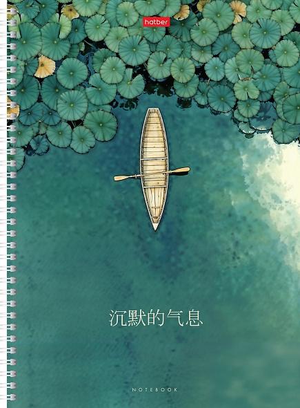Тетрадь общая А4 на гребне (твердая обложка) 80 листов (клетка) (ХАТБЕР) офсет (глянцевая ламинация) (с перфорацией) Дыхание тиш