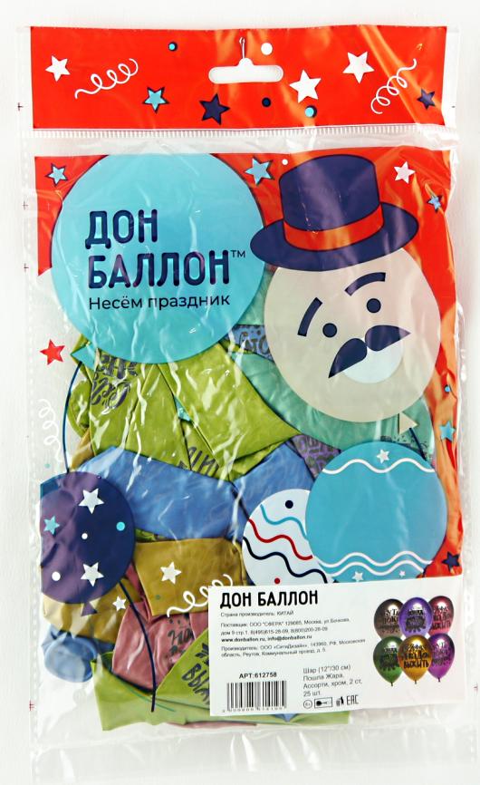 | | Шар надувной с рисунком ПОЗДР (Веселая Затея) 12" Пожелания Ассорти Китай  Шары из натурального латекса c шелкографическим рисунком в виде надписей-пожеланий. Набор состоит из 5 дизайнов нанесенных красками 2-х цветов. Рисунок расположен с одной стороны шара. Тип используемого шара - пастель - матовый оттенок цвета. Предназначены как для использования в розничной продаже, как в надутом, так и в не надутом виде. |