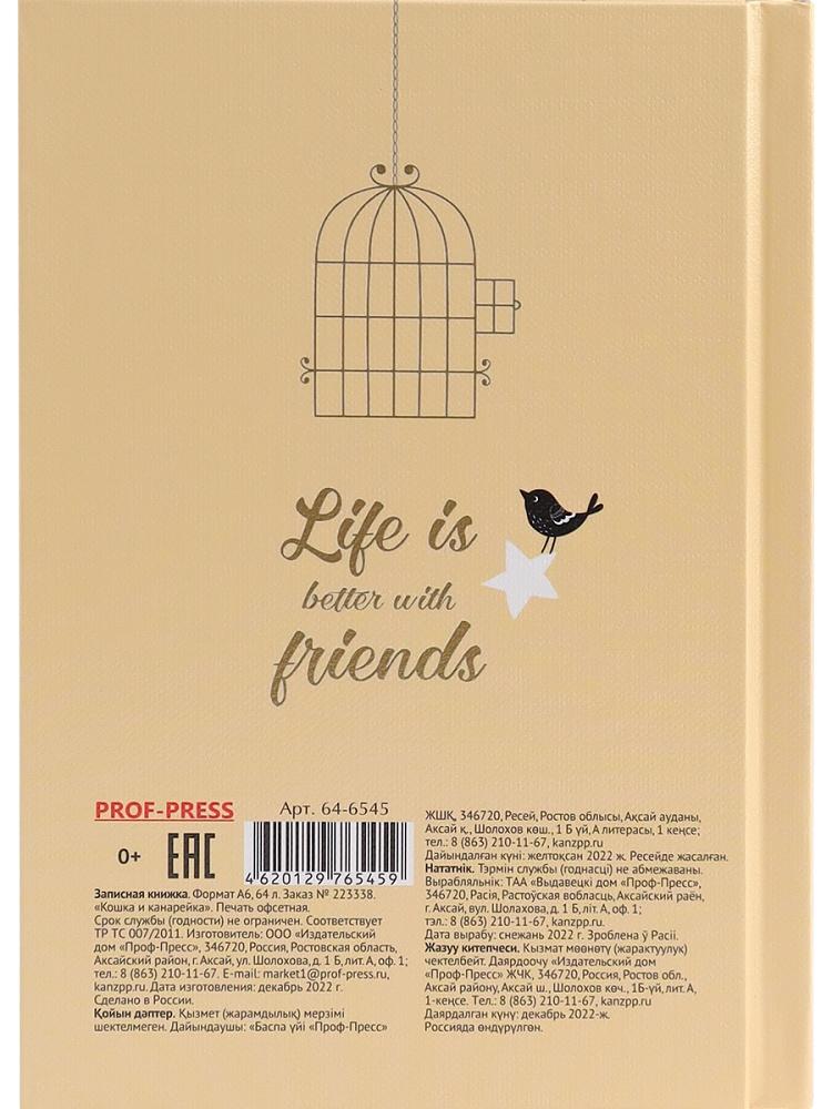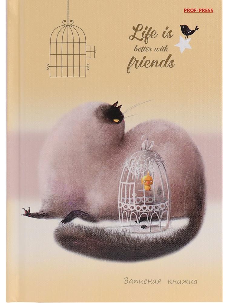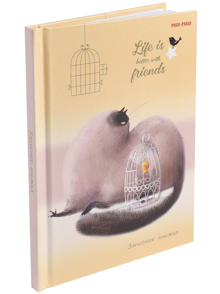 | | Книжка записная (твердая обложка) А6 64 листа ИДП (клетка) (глянцевая ламинация) "лен" Кошка и канарейка  Записная книжка — необходимый аксессуар почти для каждого человека. Столько важных дел нужно успеть сделать и ничего не упустить. И как приятно записывать мысли и планы в красивую записную книжку от компании "Проф-Пресс"! Удобный формат А6 легко помещается в сумку, внутренний блок: 64 листа. Твёрдый переплёт 7БЦ. Обложка с глянцевой ламинацией декорирована золотым тиснением и методом каландрирования (обработкой "Лён"). |