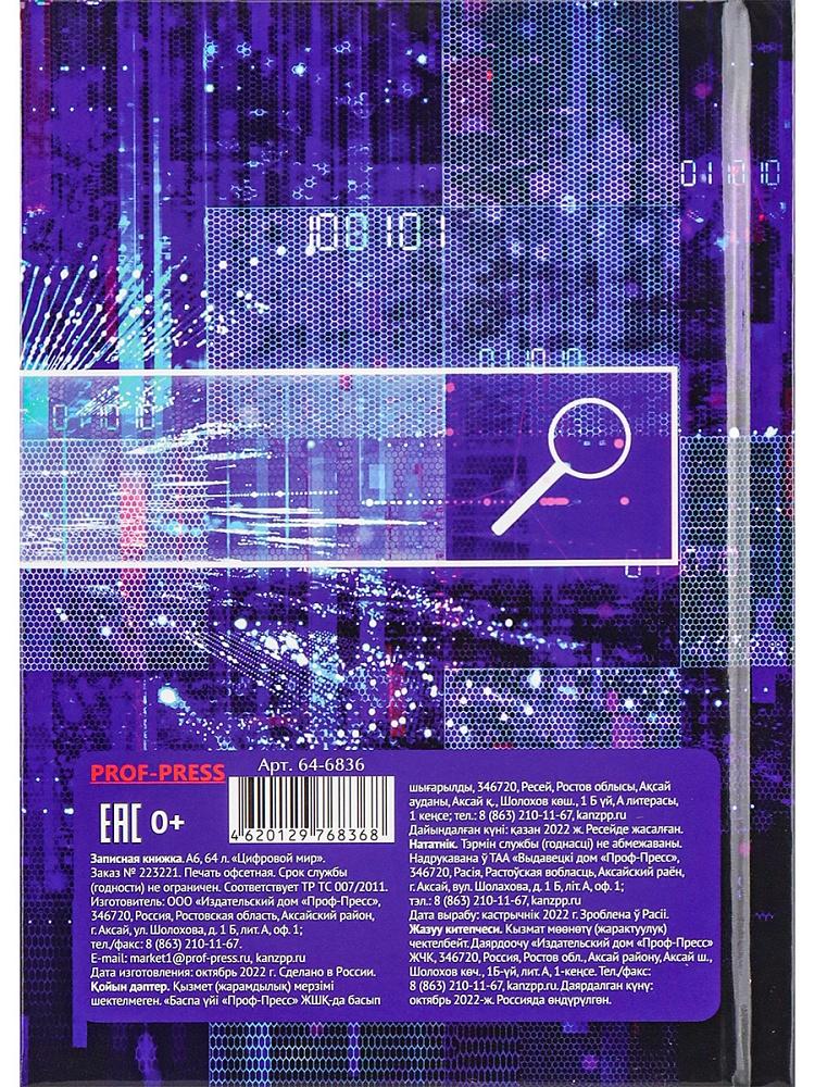 Книжка записная (твердая обложка) А6 64 листа ИДП (клетка) (глянцевая ламинация) Цифровой мир  Записная книжка — очень важный аксессуар почти для каждого человека. Столько важных дел нужно успеть сделать и ничего не упустить. И как приятно записывать мысли и планы в красивую записную книжку от компании "Проф-Пресс!" Удобный формат А6 (106х148 мм) легко помещается в сумку, внутренний блок: 64 листа, твёрдая обложка 7БЦ выполнена из картона с глянцевой ламинацией в ярком дизайне. |
