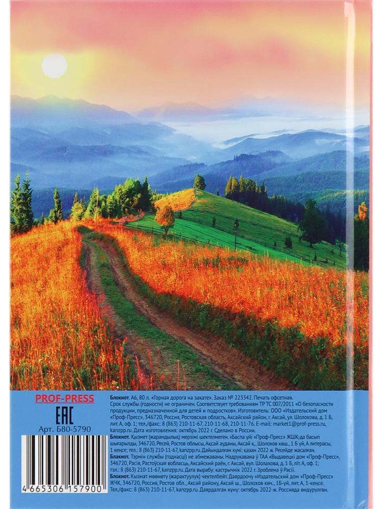 | Книжка записная (твердая обложка) А6 80 листов ИДП (клетка) (глянцевая ламинация) Горная дорога на закате  Бизнес-блокнот от компании "Проф-Пресс" — необходимый атрибут в жизни каждого делового человека. Подойдёт для важных и повседневных записей на работе, дома и в офисе. Формат А6 (110x148 мм), 80 листов, твёрдый переплёт 7БЦ, цветная мелованная обложка с глянцевой ламинацией. |