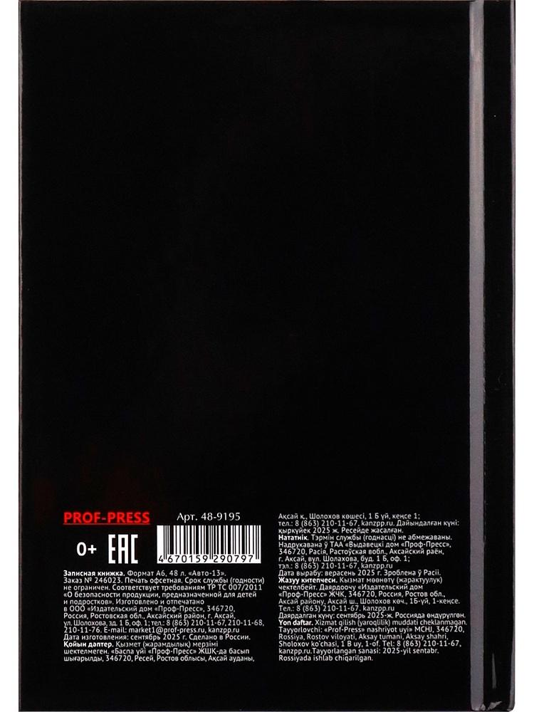 | | Книжка записная (твердая обложка) А6 48 листов ИДП (клетка) (глянцевая ламинация) Авто-13  Записная книжка — необходимый аксессуар для каждого человека. Столько важных дел нужно успеть сделать и ничего не упустить. И как приятно записывать мысли и планы в красивую записную книжку от компании "Проф-Пресс"! Формат А6, твёрдый переплёт 7БЦ, дополнительные обработки: глянцевая ламинация, внутренний блок - 48 листов. |