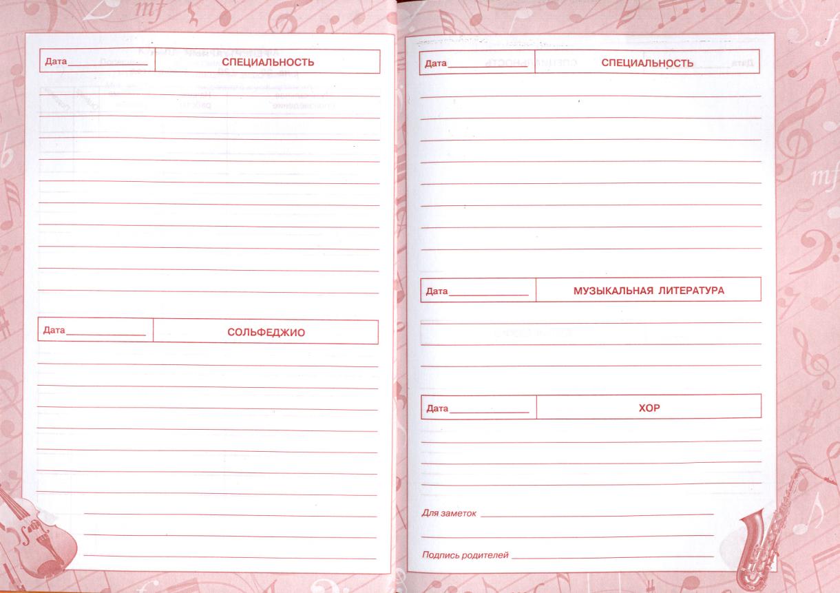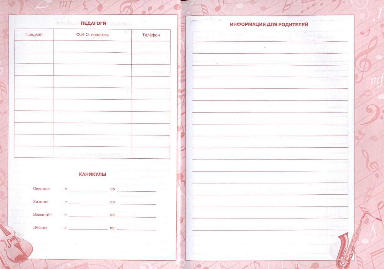 | Дневник для музыкальной школы (твёрдая обложка) КТС 48 листов офсет (матовая ламинация) (выборочный лак) Музыкальн коты  Дневник для музыкальной школы в твердом переплете, 48 листов. Внутренний блок - офсет, плотность 65 гр/м2, размер 165 х 210 мм, прошит нитками, специальная сетка. Страницы из белой бумаги с розовой печатью. Блок включает 42 учебные недели. Цветной форзац. Обложка - 7БЦ с выборочным УФ-лакированием и глянцевой ламинацией, размер 170 х 215 мм. Дневник соответствует требованиям ГОСТа. |