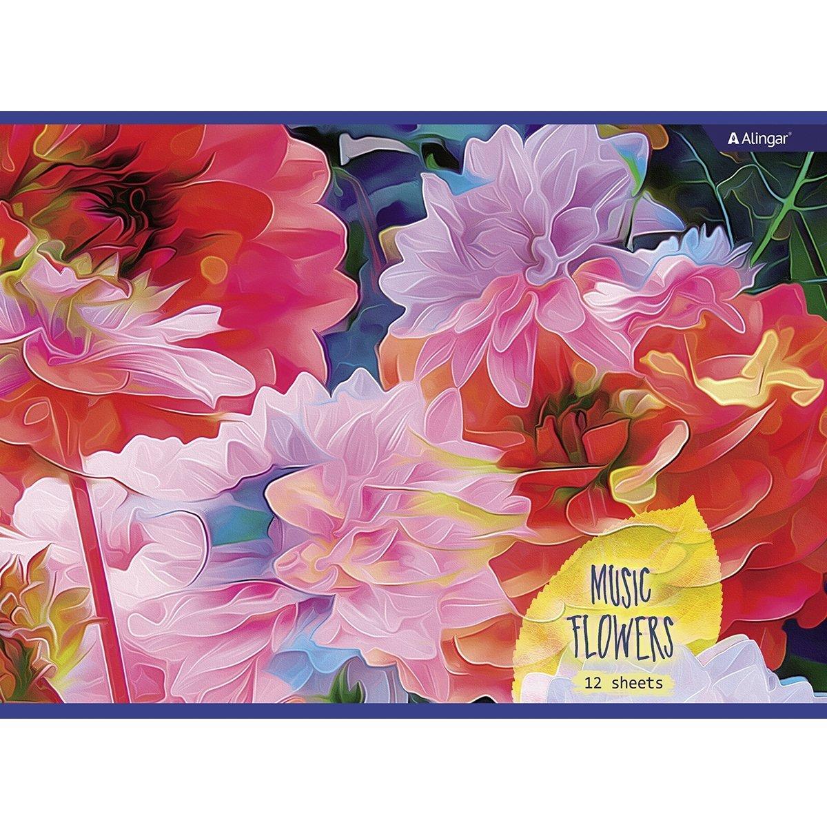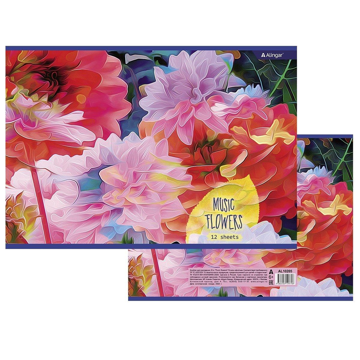 | | Альбом для рисования А4 12 листов ALINGAR (картонная обложка) Music flowers (плотность бумаги 100 г/кв м)