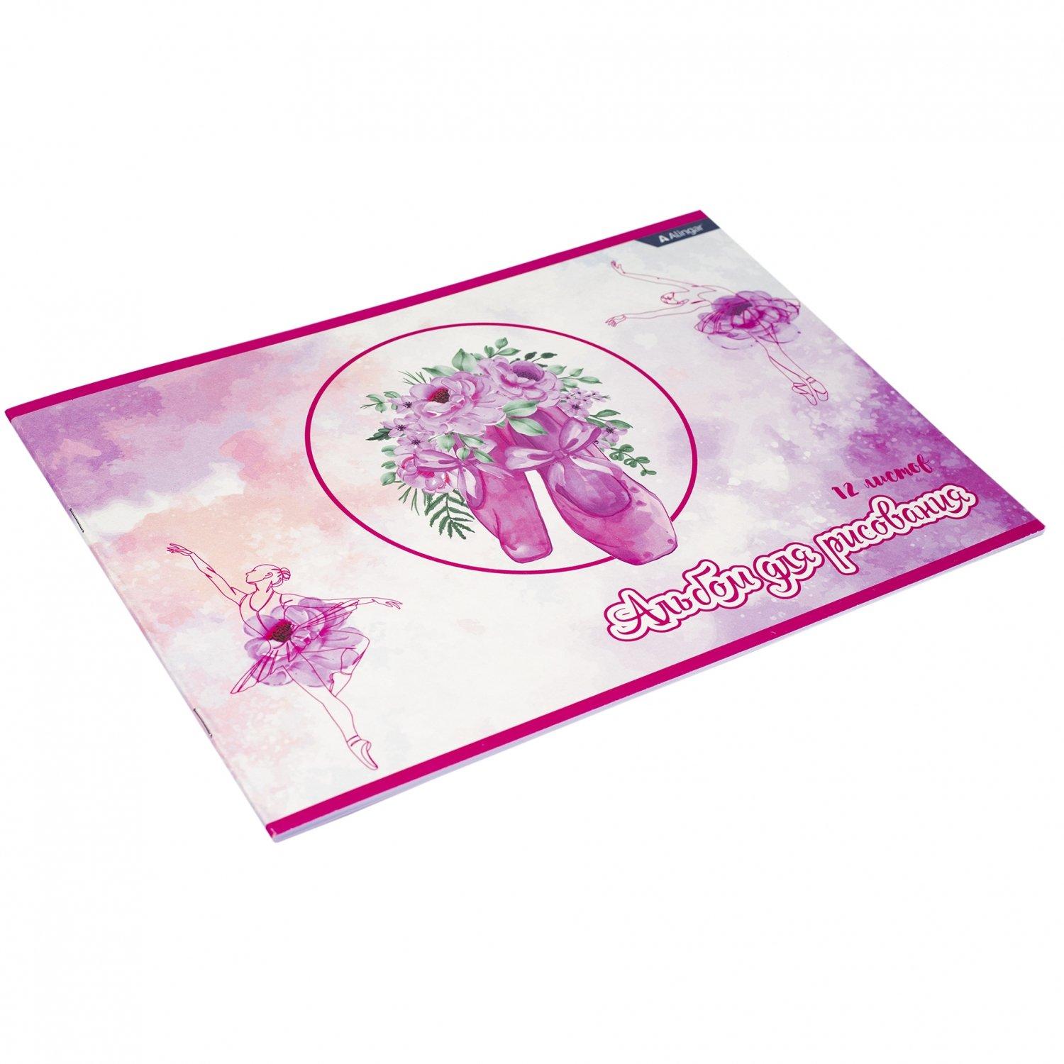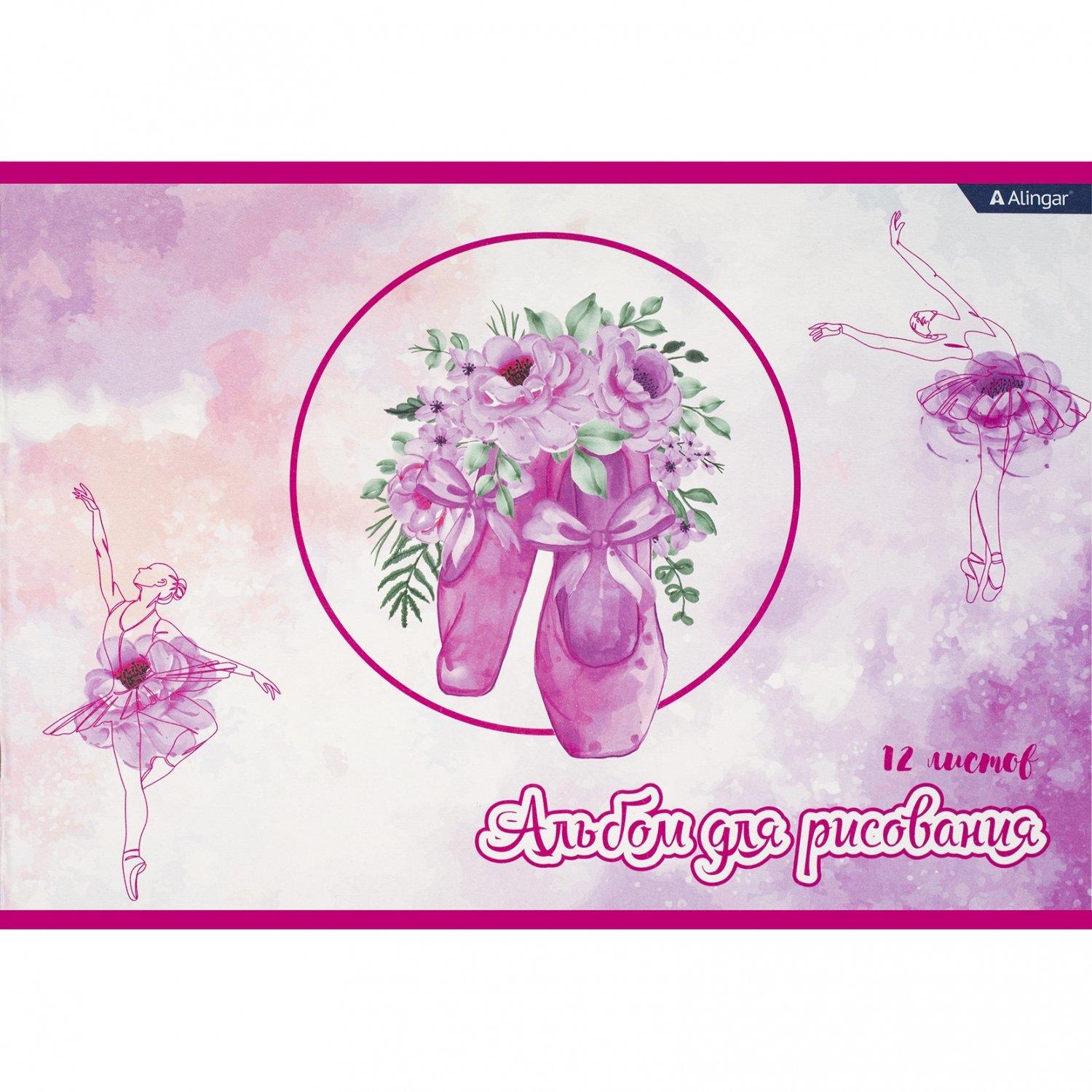 | Альбом для рисования А4 12 листов ALINGAR (картонная обложка) Балерина (плотность бумаги 100 г/кв м)