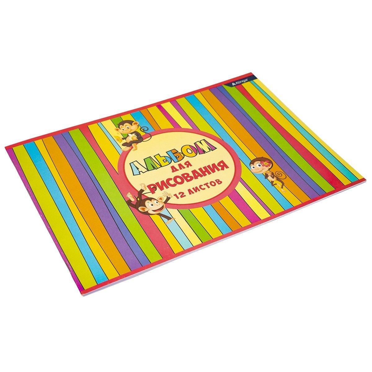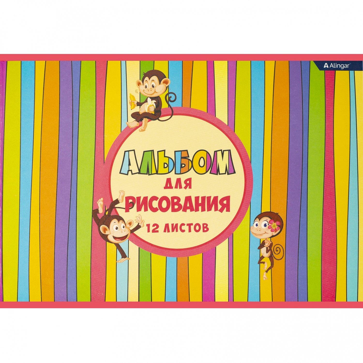 | | Альбом для рисования А4 12 листов ALINGAR (картонная обложка) Веселые мартышки (плотность бумаги 100 г/кв м)