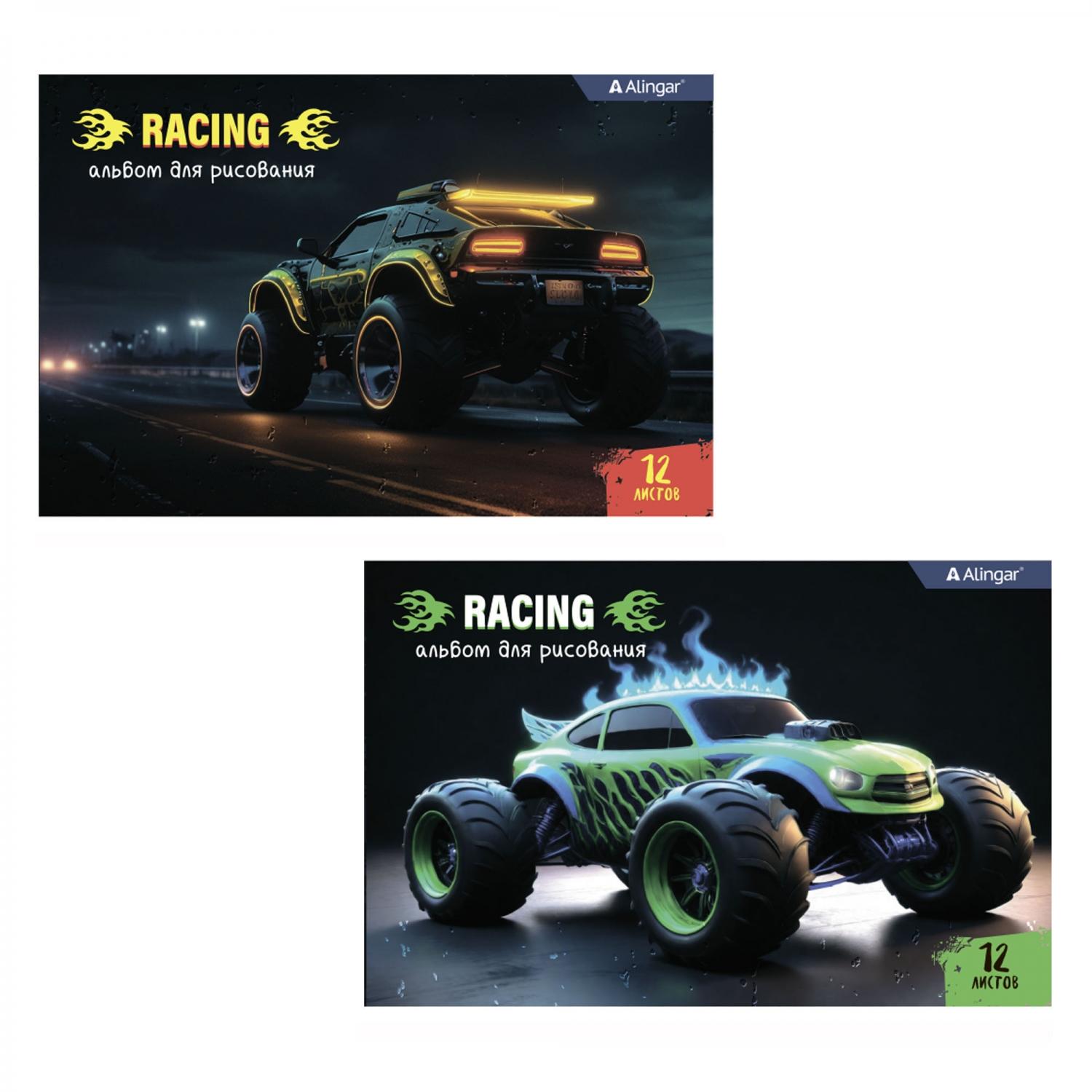 | Альбом для рисования А4 12 листов ALINGAR (картонная обложка) Яркое авто Микс Ассорти (плотность бумаги 100 г/кв м)  Альбом для рисования 20,5*27,5 см., 12л., Alingar, на скрепке, мелованный картон (стандарт), 100г/м2, "Яркое авто.МИКС". |