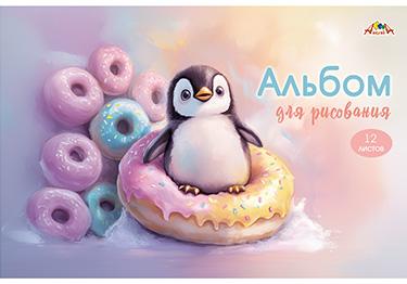 | Альбом для рисования А4 12 листов КТС (картонная обложка) Сладкий пингвиненок (плотность бумаги 100 г/кв м)  Альбом для рисования, 12 листов, формат А4, плотность 100 гр/м2. Внутренний блок - высококачественная офсетная бумага. Обложка - мелованный картон, полноцветная печать с защитным ВД-лаком. Крепление - скоба. |