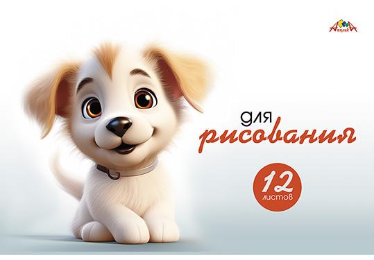 Альбом для рисования А4 12 листов КТС (офсетная обложка) Забавный щенок (плотность 80г/кв м)  Тетрадь для рисования, 12 листов, формат А4, плотность 80 гр/м2. Внутренний блок - высококачественная офсетная бумага. Обложка - офсетная бумага, полноцветная печать. Крепление - скоба. |