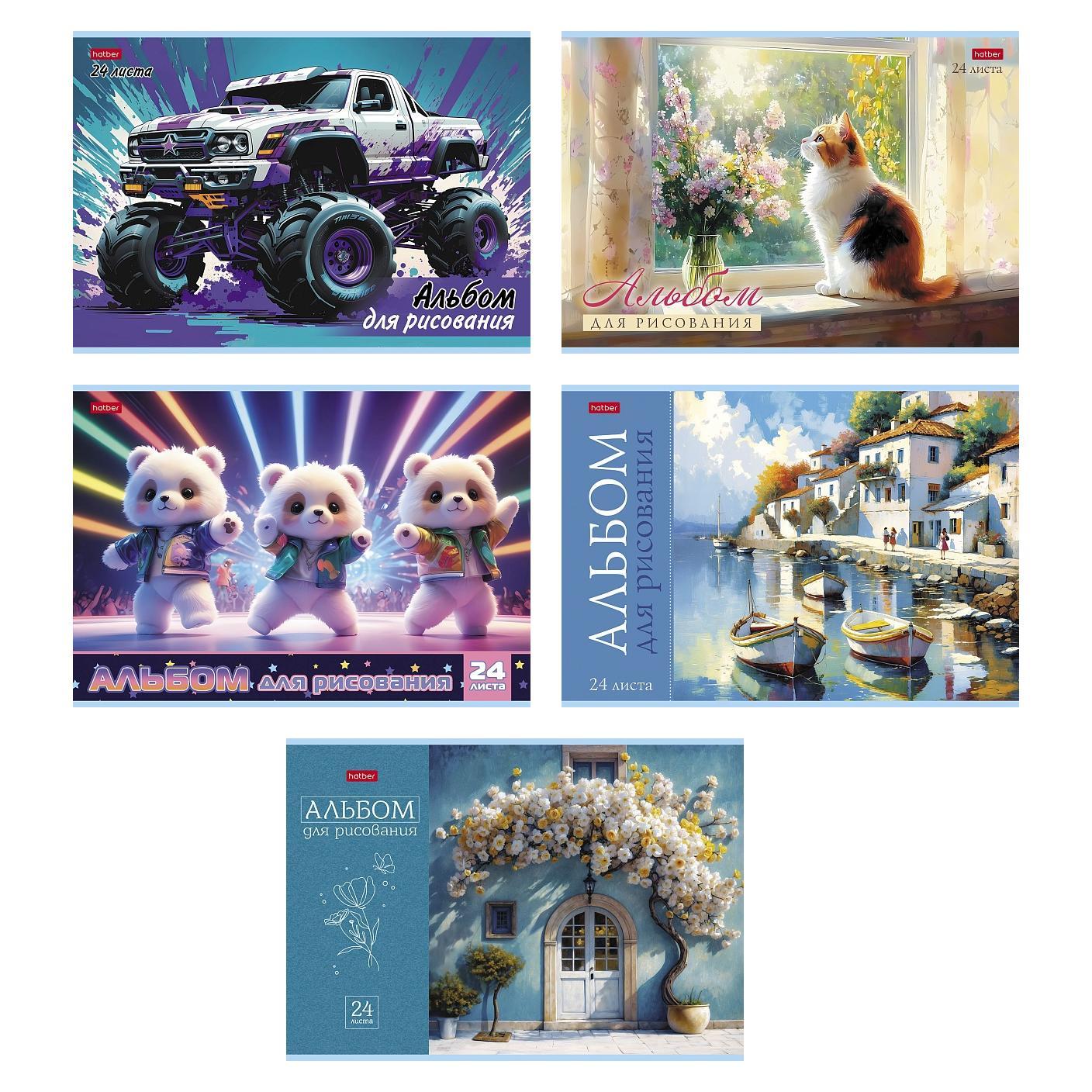| | Альбом для рисования А4 24 листа (ХАТБЕР) (картонная обложка) (глянцевая ламинация) Ассорти Выпуск-4 (плотность бумаги 100 г/кв м)  Альбом А4 формата, на скобе. Внутренний блок - 24 листа, офсетная бумага 100 гр. Обложка изготовлена из высококачественного мелованного картона. Альбом для рисования ТМ Hatber российского производства отпечатан на современном высокотехнологичном оборудовании и соответствует стандартам качества. Подходит для рисования карандашами, фломастерами, красками. Рисование в альбомах Hatber - это увлекательный и творческий досуг для всех |