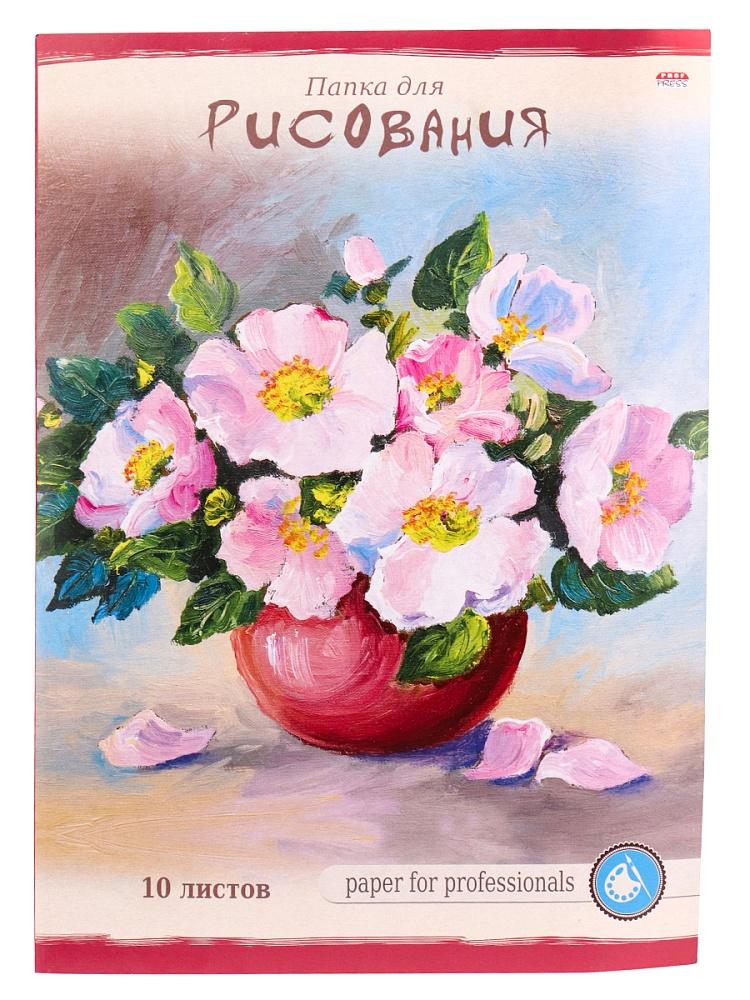 Папка для рисованияА4 10 листов КТС Нежные цветы (плотность бумаги 100 г/кв м)  Папка для рисования, 10 листов, формат А4, плотность 100 гр/м2. Внутренний блок - высококачественная офсетная бумага. Упаковка - папка из мелованного картона, полноцветная печать с ВД-лаком. |