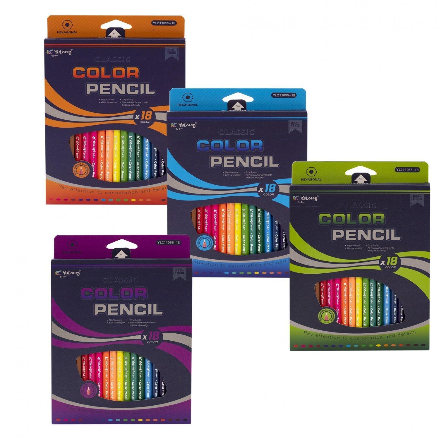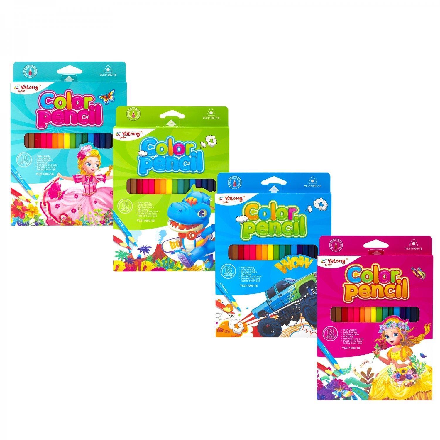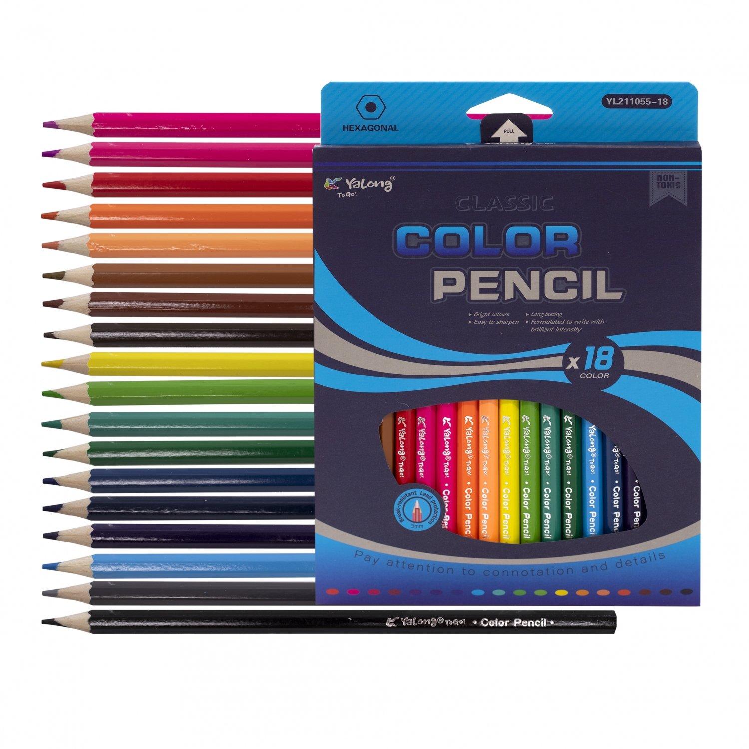 | Карандаши 18 цветов (трехгранный корпус) YALONG Mix (заточенные) (картонная упаковка с европодвесом) Ассорти  Карандаши цветные Yalong 18 цв., "Mix" деревянные, трехгранные, заточенные, грифель 3.0 мм, картон. уп., европод. Цветные карандаши - прекрасный выбор для детского творчества. Занятие рисованием развивает мелкую моторику, стимулируя участки мозга, отвечающие за мышление, речь, зрительную и двигательную память, а также координацию. Рисование развивает пространственный интеллект, творческое мышление, фантазию и воображение малыша. В качестве результата своего труда ребенок получает реальный результат - рисунок, что учит его целеполаганию и формирует ориентацию на результативную деятельность. Прекрасно подходит для занятий рисованием в детском саду, кружках, дома, школе. Рекомендовано детям от 3-х лет. |