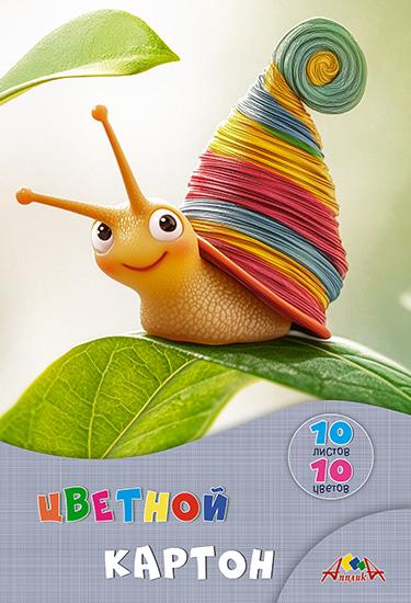 | Картон цветной А4 10 листов 10 цветов (АППЛИКА) в папке Веселая улитка (плотность 200г/кв м)  Цветной Картон немелованный односторонний А4 формат. 190*275 мм. 10 листов и 10 цветов. Плотность 200 гр. Представленные цвета: Жёлтый, зелёный, розовый, голубой, черный, салатовый, белый, красный, оранжевый и коричневый. Упаковка в папке. |