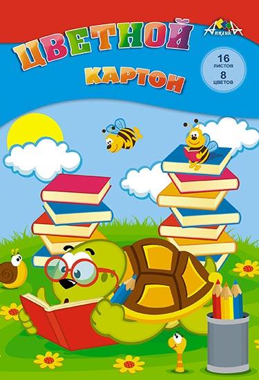 | Картон цветной А4 16 листов 8 цветов (АППЛИКА) в папке Любознательная черепашка (плотность 200г/кв м)  Цветной картон 16 листов, 8 цветов. Формат А4. Внутренний блок изготовлен из немелованного картона. Плотностью 200 гр/м2. Ровные насыщенные цвета: синий, зеленый, черный, красный, оранжевый, желтый, белый, фиолетовый. Упаковка - папка с 1-м клапаном из мелованного картона. |