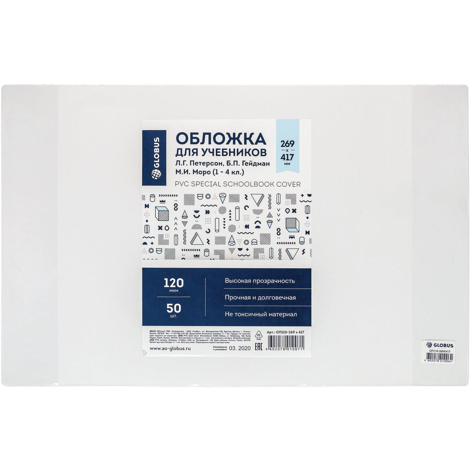 | | Обложка для учебника 272*420 ПВД 5шт набор Петерсон, Моро 110мк СМЦ прозрачная