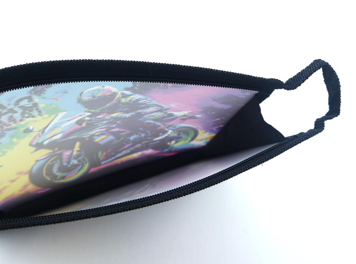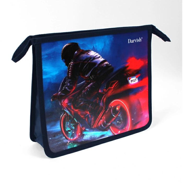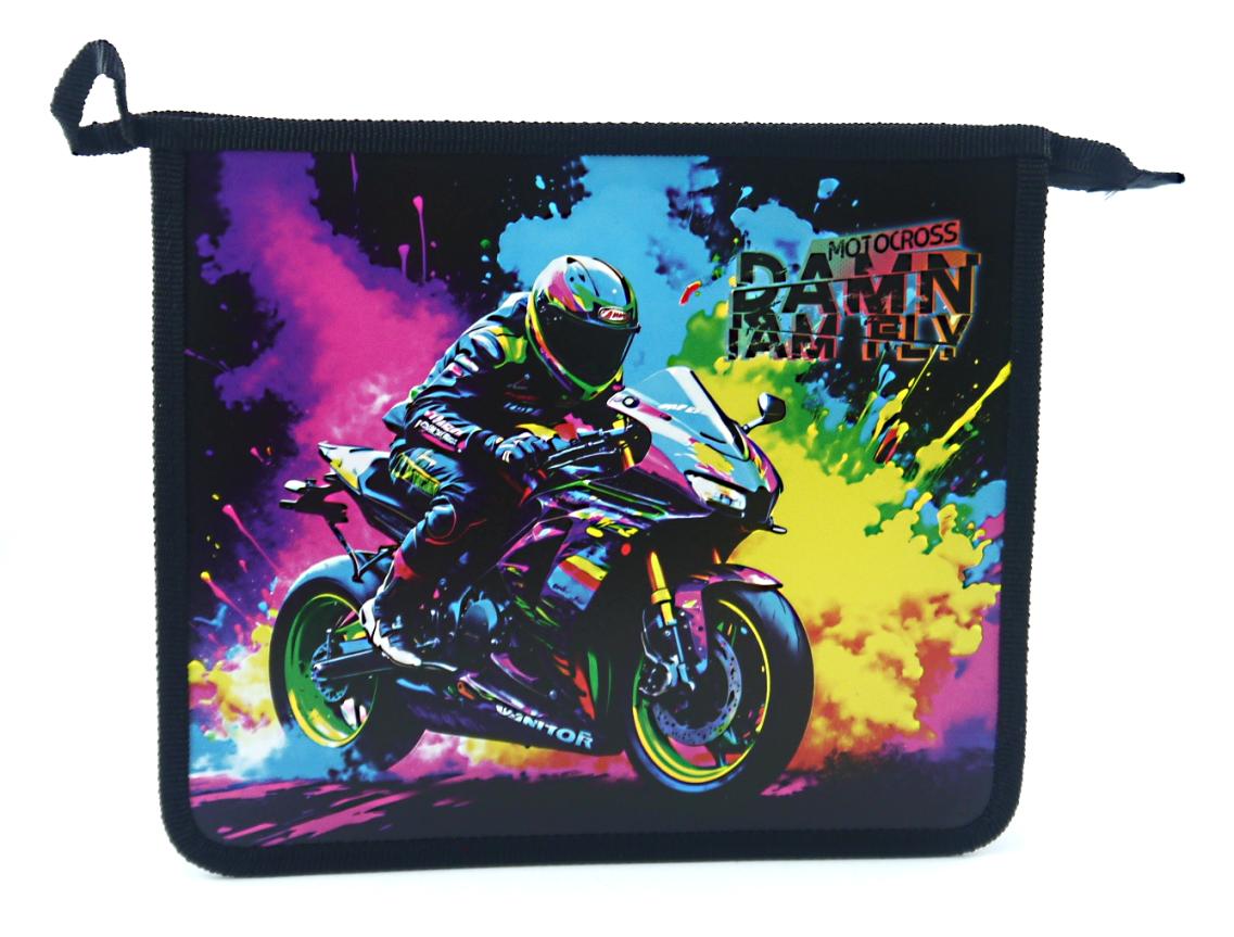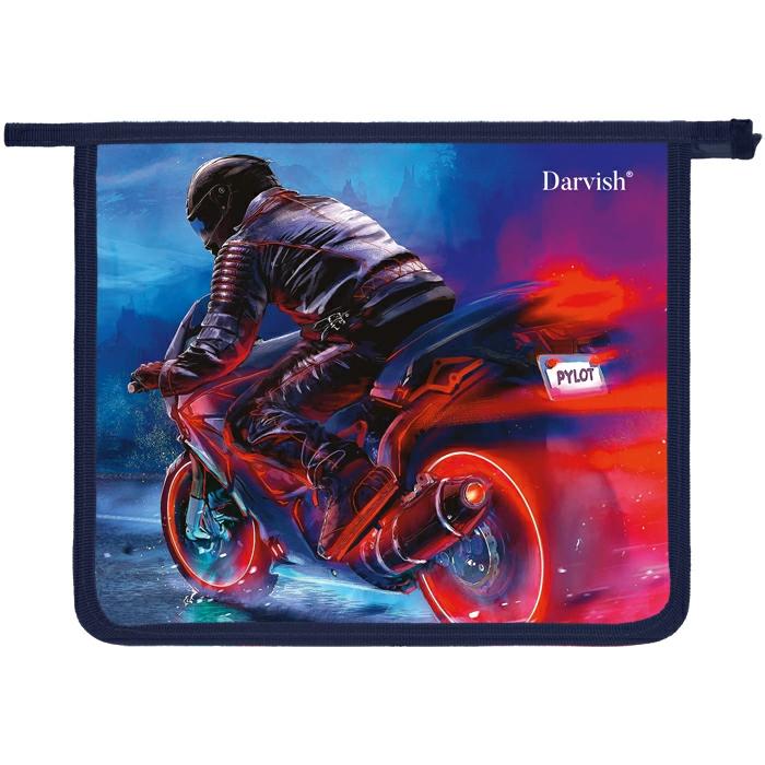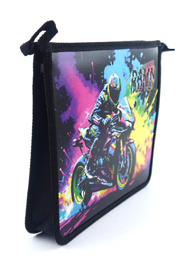 | Папка для тетрадей пластиковая А5 (DARVISH) с 1 отделением (молния сверху) Мотогонщик (п/упаковка)  Предназначена для переноски и хранения тетрадей и других канцелярских принадлежностей. На молнии. Размер : 24,5*20,6*6см |
