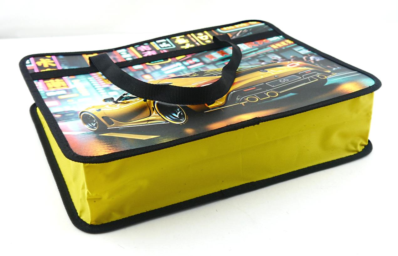 | | Папка для тетрадей А4 ткань (ручки - тесьма) ПЧЕЛКА с 1 отделением (молния сверху) Hypercar (п/упаковка с европодвесом)  Папка текстиль на молнии сверху А4 1отд с ручками Пчелка Hypercar печать на ткани + тв дно Универсальная папка из прочного полиэстера необходима каждому школьнику и дошкольнику для дополнительных занятий учебой и творчеством. Благодаря увеличенному объему, в нее поместятся тетради, учебные пособия, а так же принадлежности для лепки и рисования. |