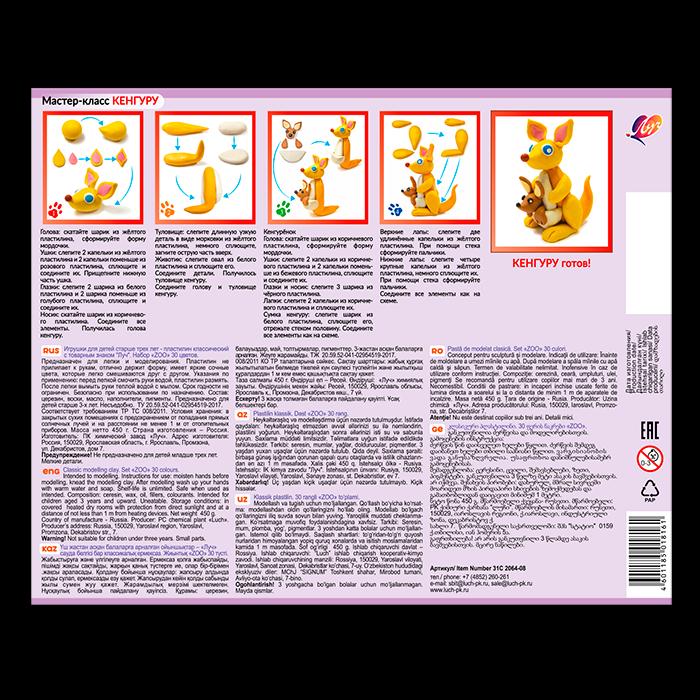 | Пластилин 30 цветов 450гр ЛУЧ Zoo (картонная упаковка)  Пластилин предназначен для лепки и моделирования в детском творчестве. Яркий и пластичный пластилин изготовлен из высококачественных компонентов. Огромный набор пластилина красивых цветов разных оттенков: от нежных до более насыщенных. В меру мягкий и в меру твёрдый. Является отличным материалом для обучения лепке. Пластилин рекомендуют не только педагоги и родители, но и профессиональные мультипликаторы. Не имеет выраженного неприятного запаха. Имеет яркие, не приглушённые чистые цвета, которые отлично смешивающиеся друг с другом. Отлично держит форму, не рвётся и не крошится при перегибании. Не липнет к рукам. Идеально вытягивается до тончайшей колбаски. Можно делать очень маленькие детали, которые не деформируются при соединении. |