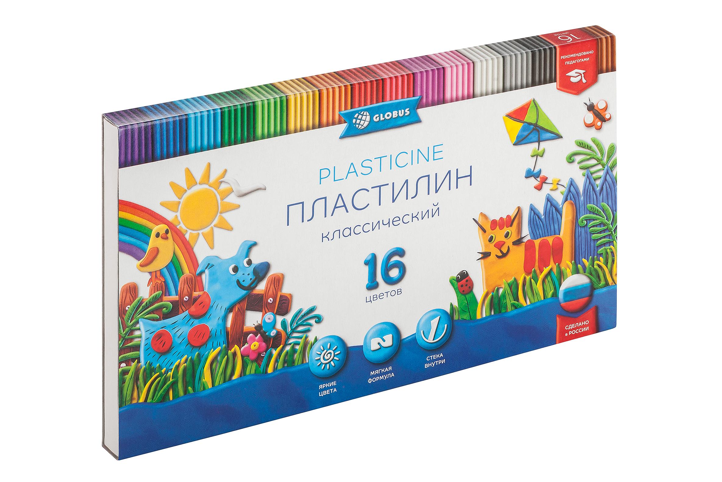 Пластилин 16 цветов 320гр ГЛОБУС Классика со стеком (картонная упаковка)  Пластилин серия «КЛАССИЧЕСКИЙ», 16 цветов (320 грамм). Пластилин обладает яркими и насыщенными цветами, абсолютно безопасен для детей, легко лепится и не прилипает к рукам. Изготовлен по специальной смягчающей формуле и легко смешивается. Внутри пластиковая стека. Яркий и стильный дизайн упаковки выделяется на полке. Рекомендован педагогами. Картонная упаковка. |