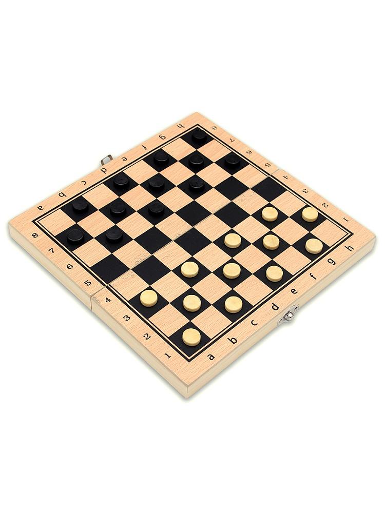 | | Игра настольная Шахматы +шашки 2 в 1 ДК 21*21см пластиковые бежевые (п/упаковка)   Шахматы и шашки – одни из самых популярных классических настольных игр. Данный набор отличается простотой дизайна и компактностью, благодаря чему игру удобно хранить дома и брать с собой. Состав набора: • игровая доска / чемоданчик для хранения (21 х 10,5 см – в сложенном виде, 21 х 21 см – в разложенном виде) • комплект шахмат – 32 шт. (диаметр – 1,5 см, высота – до 3,8 см) • комплект шашек – 24 шт. (диаметр – 1,5 см) Чемоданчик для хранения изготовлен из пластика, имеет скругленную форму и защёлкивающийся замочек. Коробочка легко трансформируется в устойчивую шахматную доску, стилизованную под дерево. Шахматные фигуры и шашки также изготовлены из пластика, благодаря чему имеют очень лёгкий вес – такие фигуры будет удобно передвигать детям, пожилым людям и др. Данный набор отличается простотой исполнения и подойдёт для домашней игры в шахматы и шашки, для частых тренировок и дорожного досуга. Игра в шашки и шахматы развивает логическое мышление, а также учит выстраивать верную стратегию и планировать действия на несколько шагов вперёд.  |