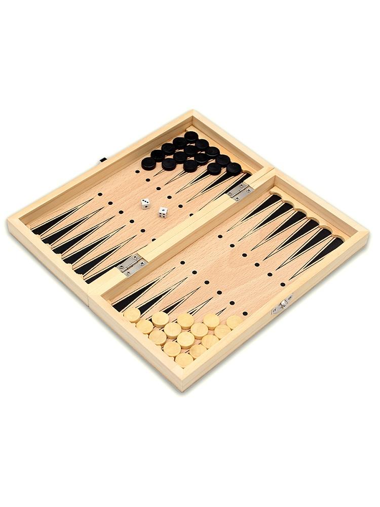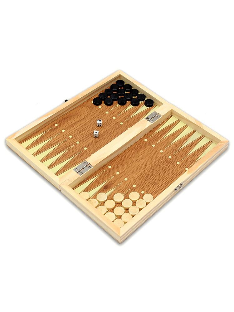 Набор 3-в-1, включающий в себя самые популярные классические настольные игры - шахматы, шашки и нарды. Это недорогое и выгодное решение, если вы хотите иметь в своей коллекции компактный комплект из нескольких традиционных настолок. Доска и фишки для шашек и нард выполнены из натуральной древесины, покрытые защитным лаком, предотвращающим образование потертостей и царапин, а шахматные фигуры сделаны из пластика. Части доски скреплены между собой устойчивой к износу фурнитурой. |