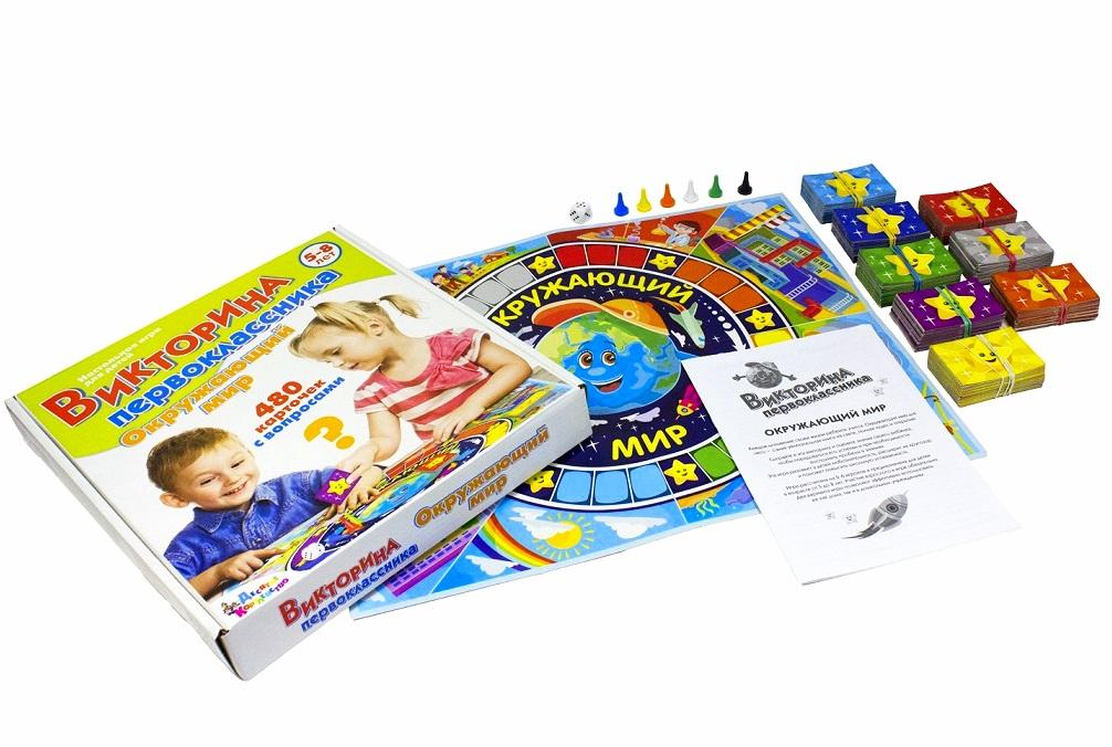| | Игра настольная Викторина ДК Первоклассника "Окружающий мир" (картонная упаковка)  Каждое мгновение своей жизни ребенок учится. Окружающий мир для него – самая увлекательная книга на свете, полная чудес и открытий. Сыграйте в эту викторину и оцените знания своего ребенка, чтобы порадоваться его успехам и при необходимости восполнить пробелы в знаниях. Эта игра разовьет у детей любознательность, расширит их кругозор и поможет повысить школьную успеваемость. Игра рассчитана на 2-6 игроков и предназначена для детей в возрасте от 5 до 8 лет. Участие взрослого в игре обязательно. Два варианта игры позволяют эффективно использовать ее как дома, так и в дошкольных учреждениях. СОСТАВ ИГРЫ: 1. Игровое поле – 1 шт. 2. Кубик «1-6» – 1 шт. 3. Разноцветные фишки – 6 шт. 4. Карточки – 480 шт. 5. Правила игры – 1 шт |