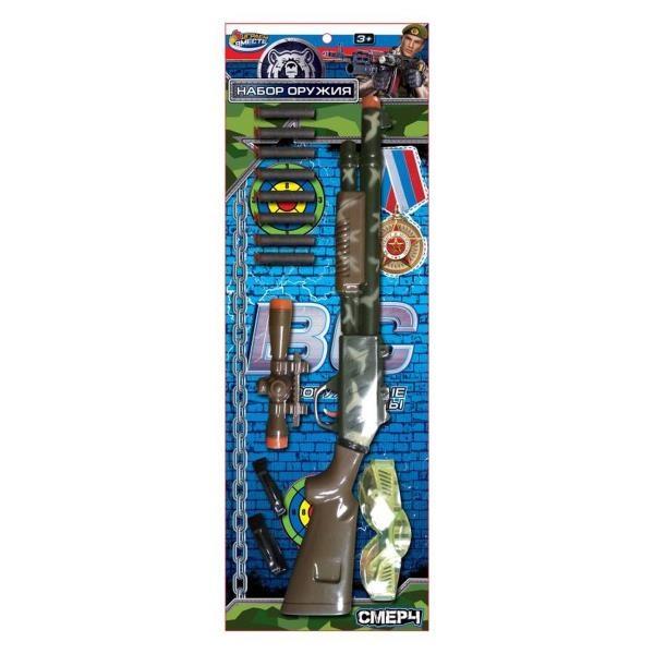 | Игрушка Оружие Военный набор 5 предметов ИграемВместе +8 присосок (картонная упаковка с европодвесом)  Военный игровой набор «Смерч» ТМ «Играем вместе» непременно понравится юному герою: - реалистичный дизайн - удобно держать в руках В комплекте: - автомат - 8 безопасных мягких пуль - очки - оптический прицел (муляж) С этим игровым оружием ваш ребёнок будет придумывать увлекательные спецзадания, защищать мир и стоять на страже порядка. С таким автоматом маленький герой станет самым метким стрелком. Набор подойдёт для активных игр на воздухе и в помещении. Размер упаковки: 50 х 15 х 3 см. Материал: пластмасса. Рекомендовано детям от 3-х лет. |