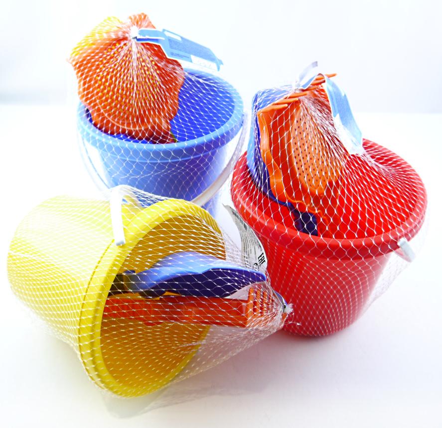 | | Игрушка (Лето) Набор для песка ( 3 предмета) СТРОМ в сетке Ассорти У863  Детский песочный набор предназначен для игр с песком и водой. Благодаря играм с сыпучими материалами малыш будет развивать воображение, мелкую моторику рук и координацию движений, знакомиться с окружающим миром.(ведро большое, грабли-ситечко, совок) |